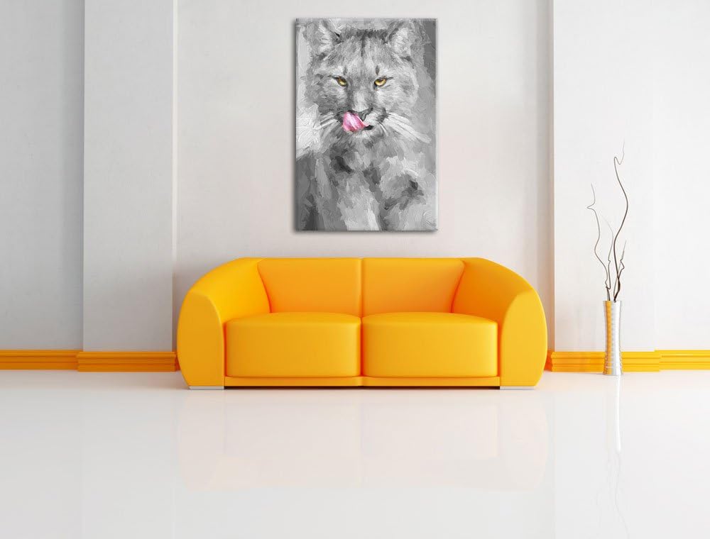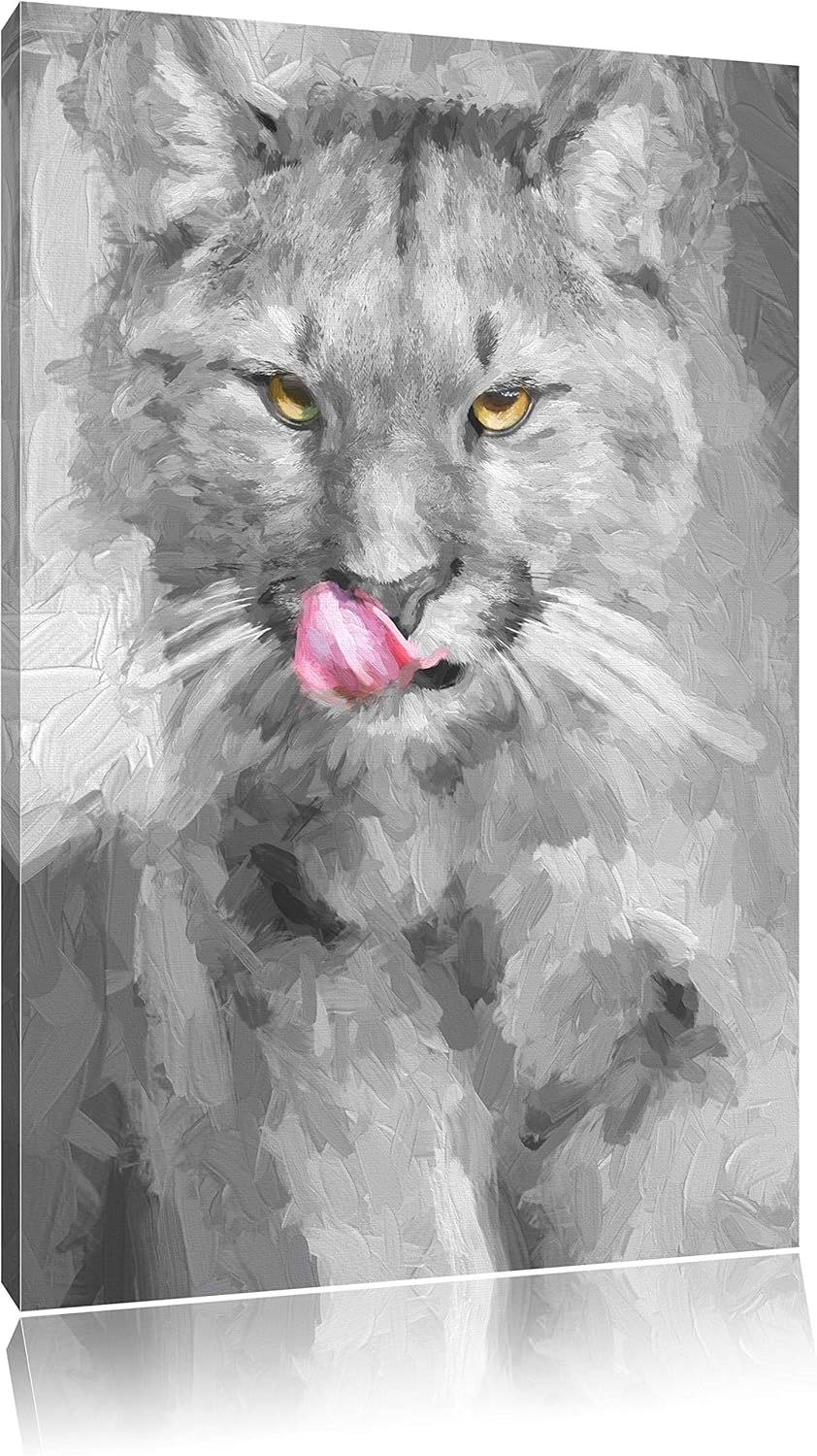 anmutiger Puma schwarz/weiss Deluxe Format: 100x70 cm auf Leinwand, XXL riesige Bilder fertig gerahm