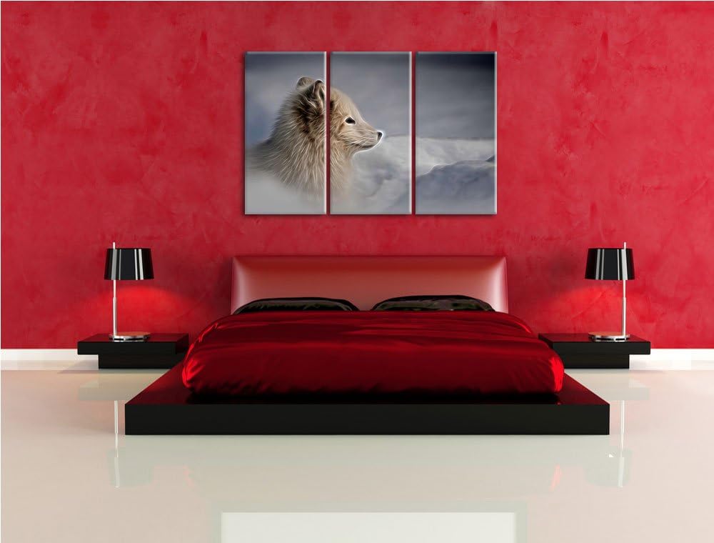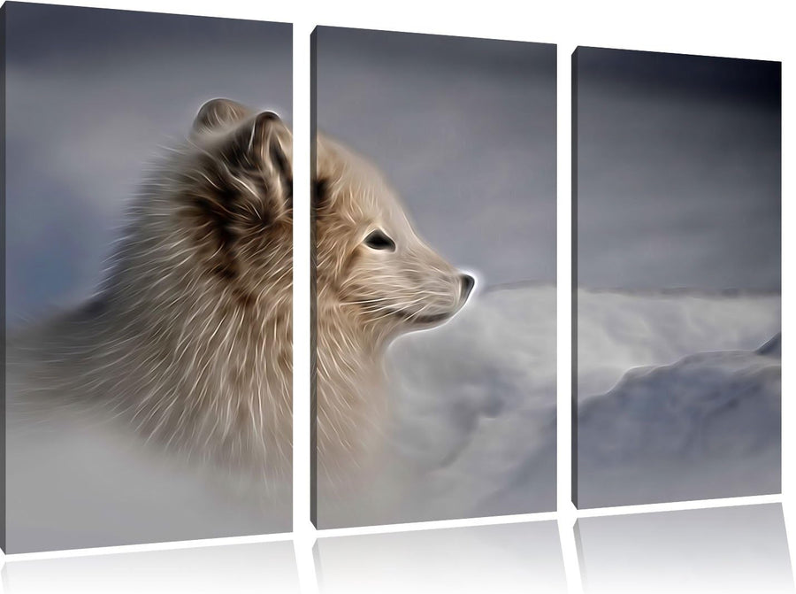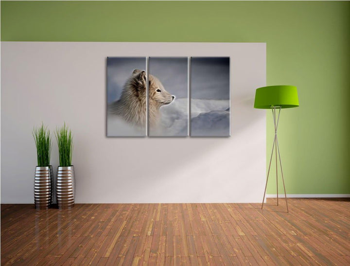 Anmutiger Polarfuchs im Schnee Spezial 3-Teiler Leinwandbild 120x80 Bild auf Leinwand, XXL riesige B