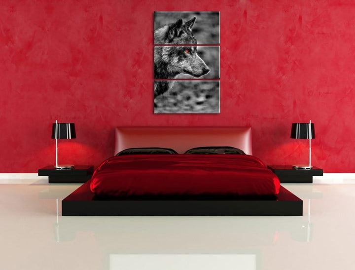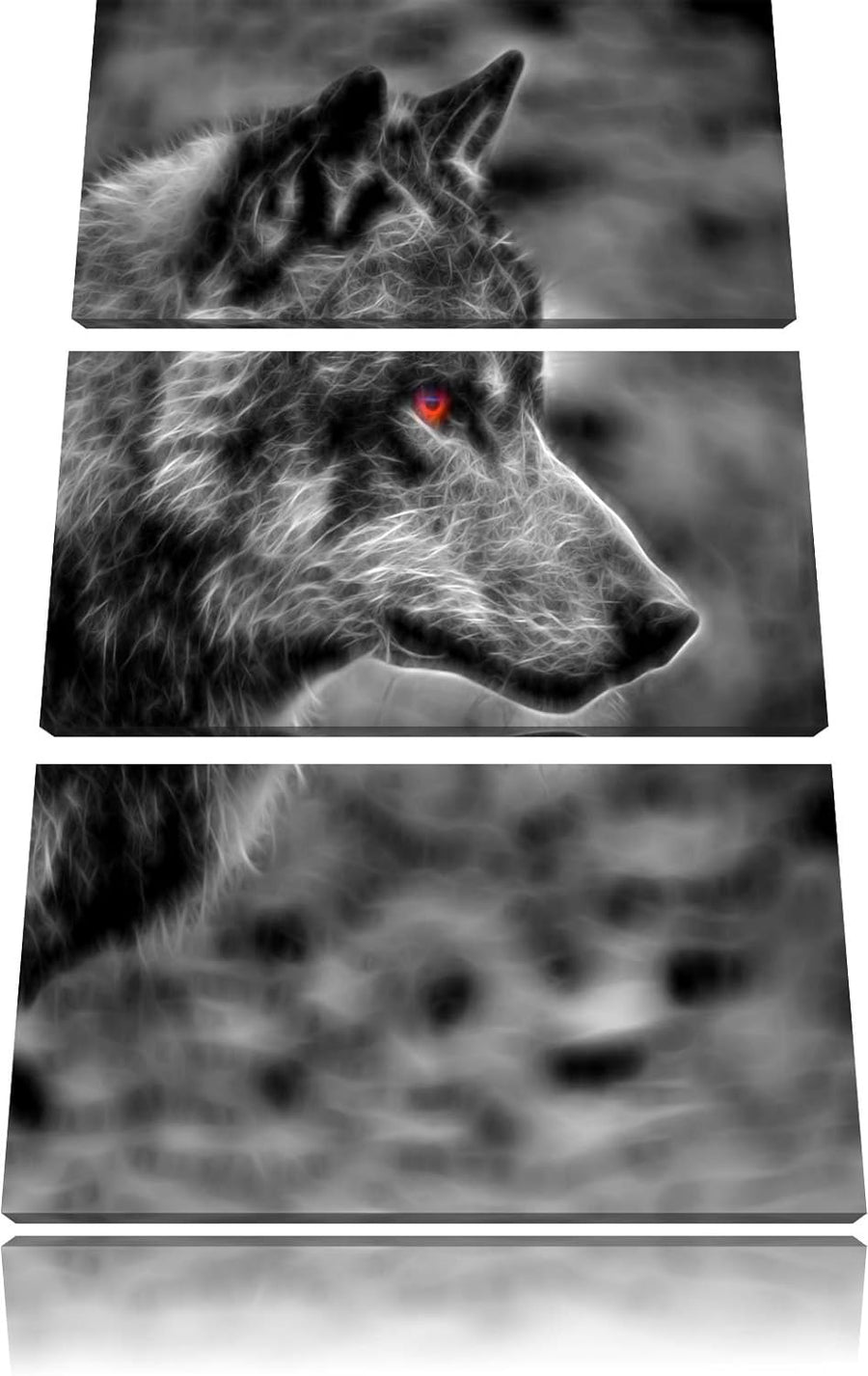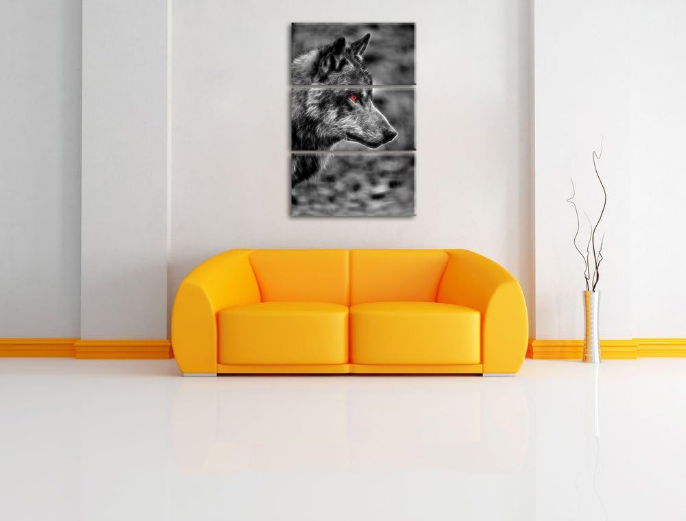 anmutiger Wolf im Wald schwarz/weiss Deluxe 3-Teiler Leinwandbild 120x80 Bild auf Leinwand, XXL ries