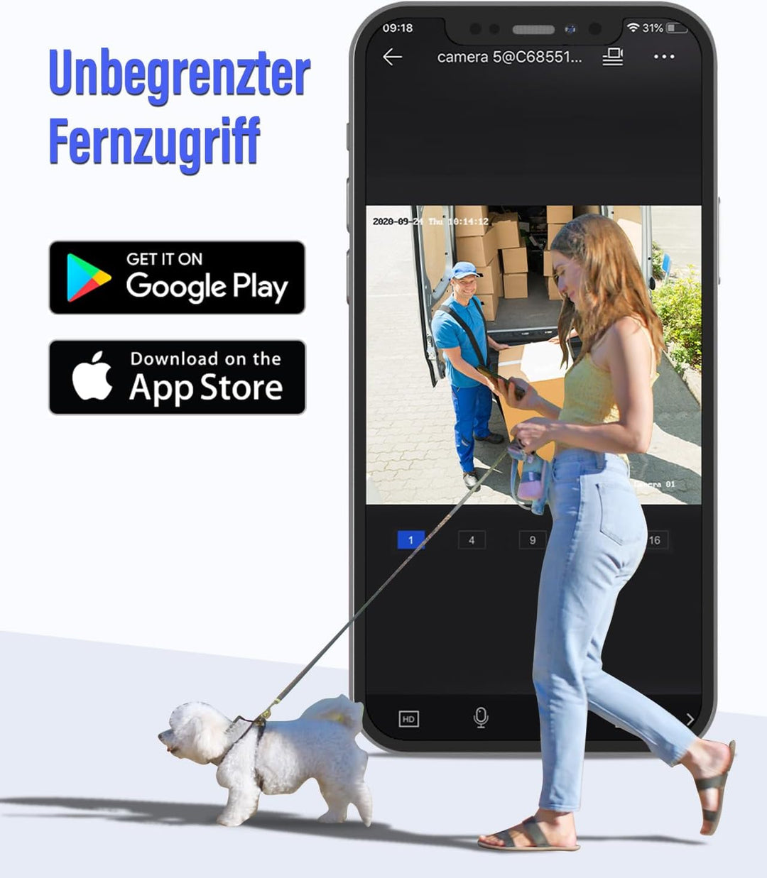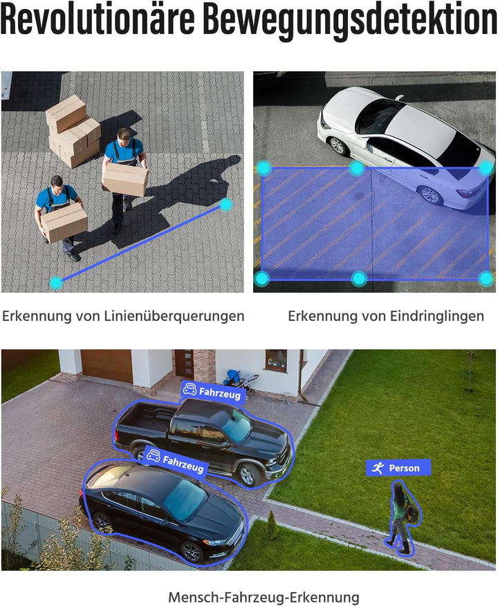 - 【Erweitertes H.265 + Videoformat】 H.265 + Codierung bietet eine längere Aufnahmezeit, bevor alte Aufnahmen überschrieben werden müssen, wodurch bis zu 80% Speicherplatz im Vergleich zu H.264 gespart werden. Sie geniessen schnelles und