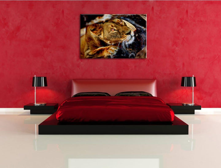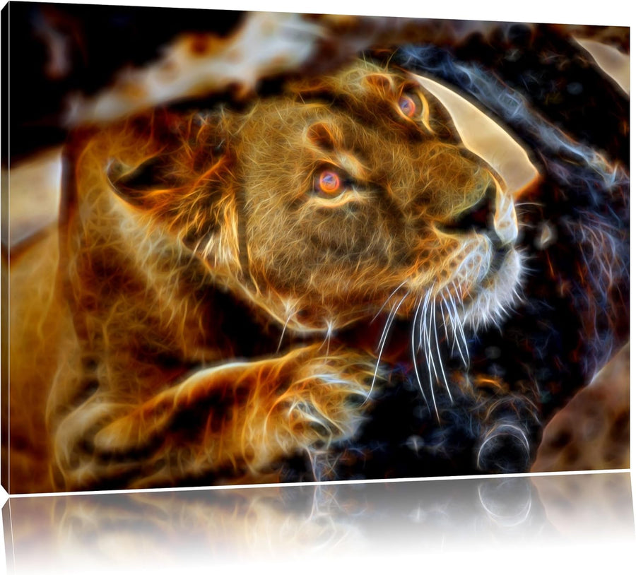 anpirschende Löwin Deluxe Format: 100x70 cm auf Leinwand, XXL riesige Bilder fertig gerahmt mit Keil