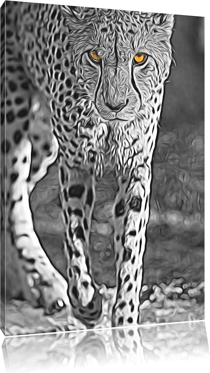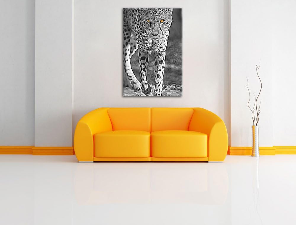 anpirschender listiger Gepard schwarz/weiss Deluxe Format: 100x70 cm auf Leinwand, XXL riesige Bilde