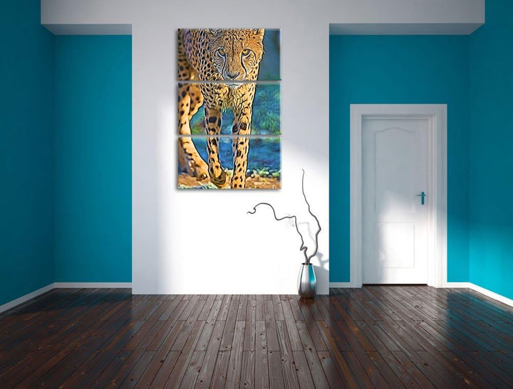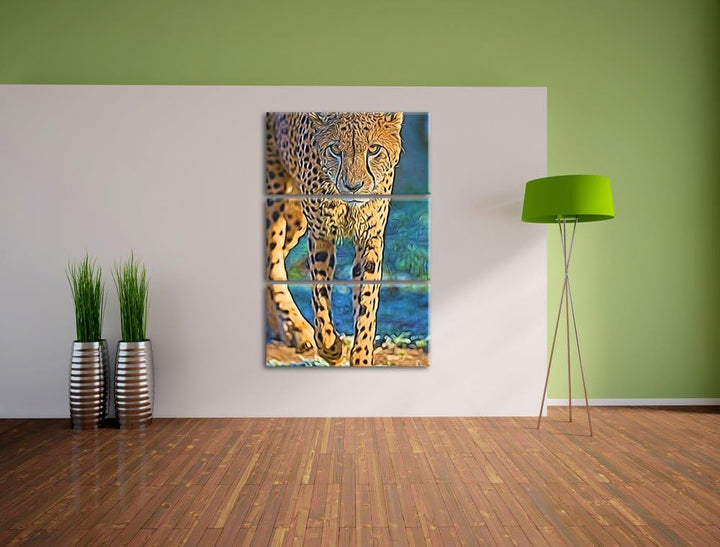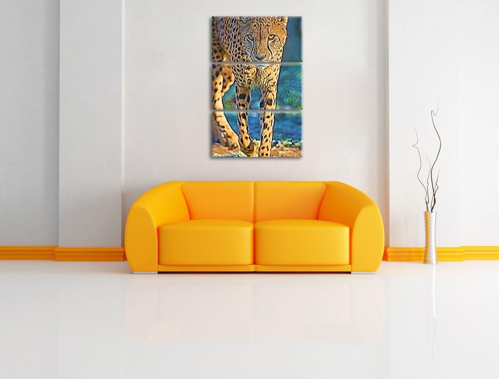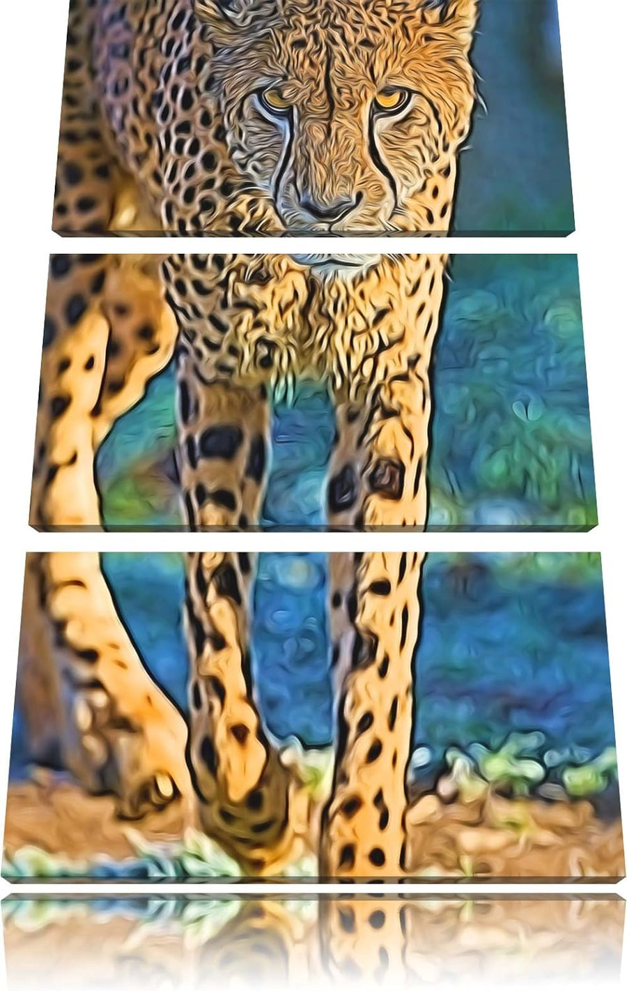 anpirschender Gepard Spezial 3-Teiler Leinwandbild 120x80 Bild auf Leinwand, XXL riesige Bilder fert