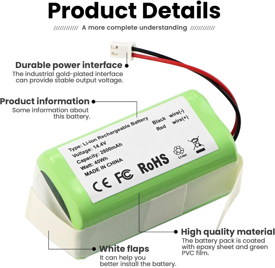 - Akku Spezifikationen:Akku-Typ: Wiederaufladbares Lithium-Polymer; Kapazität: 40Wh/2800mAh; Spannung: 14.4V; Batterielebensdauer:Erwartete Lebensdauer von mehr als 1000 Ladezyklen