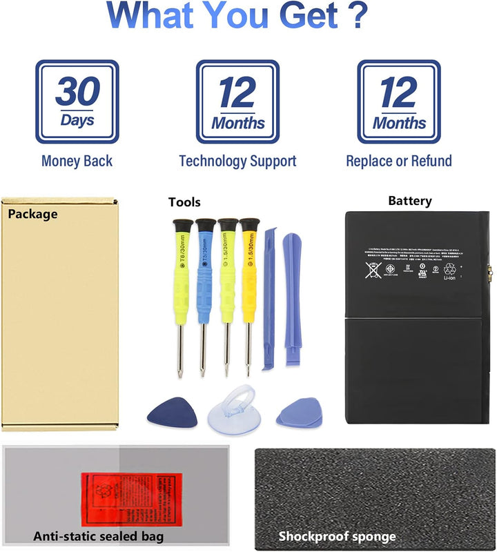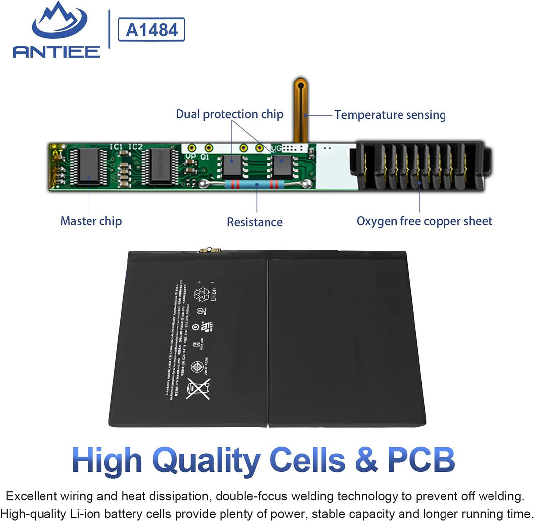 - 【Kompatible Teilenummer】For iPad 2017 A1822 A1823 iPad 2018 A1893 A1954 iPad Air A1484 A1474 A1475 A1476 Tablet Battery.