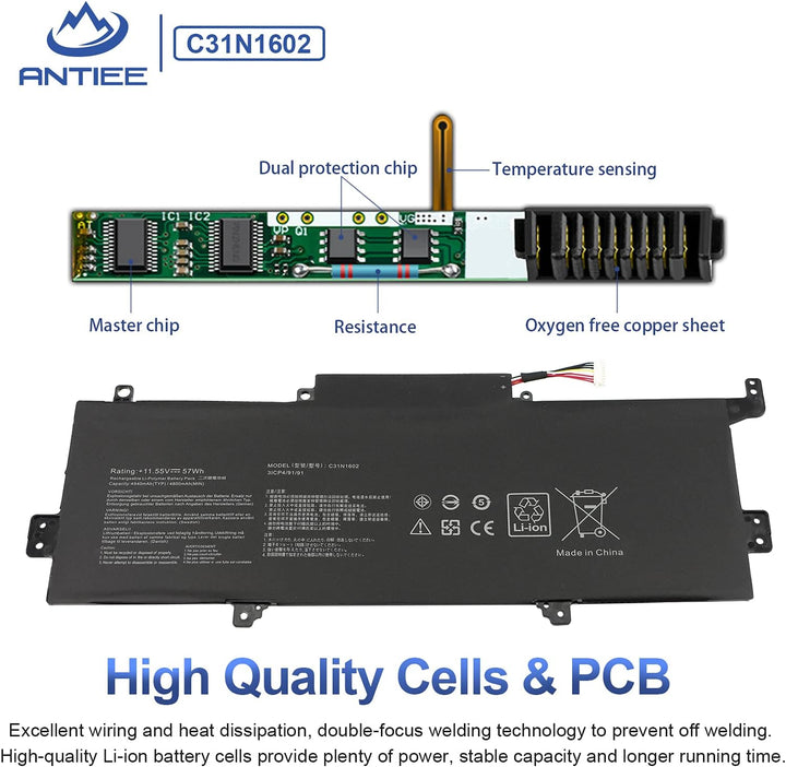 ANTIEE New C31N1602 Laptop Akku für Asus ZenBook U3000U UX330 UX330U UX330UA UX330UAK UX330UA-AH54 U