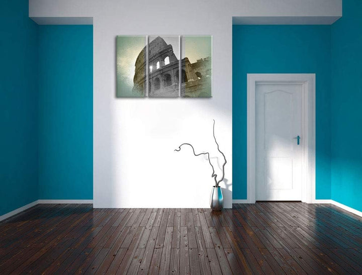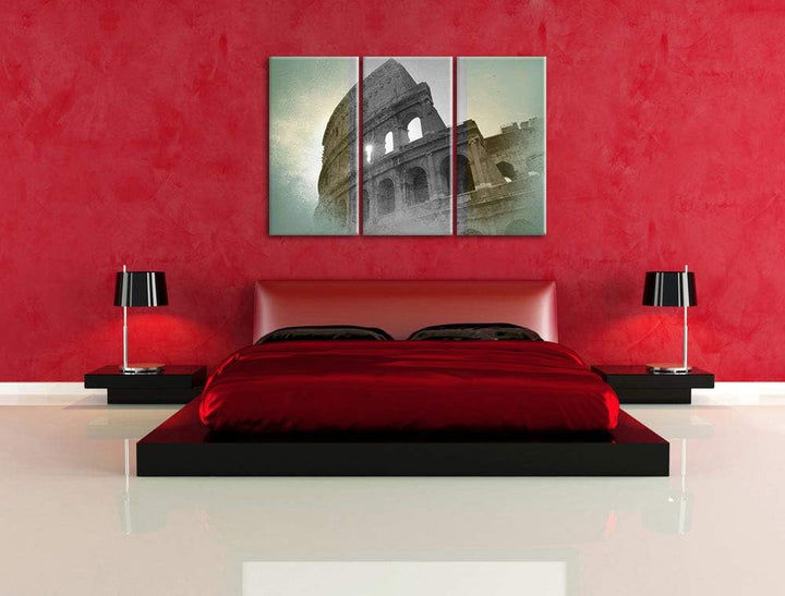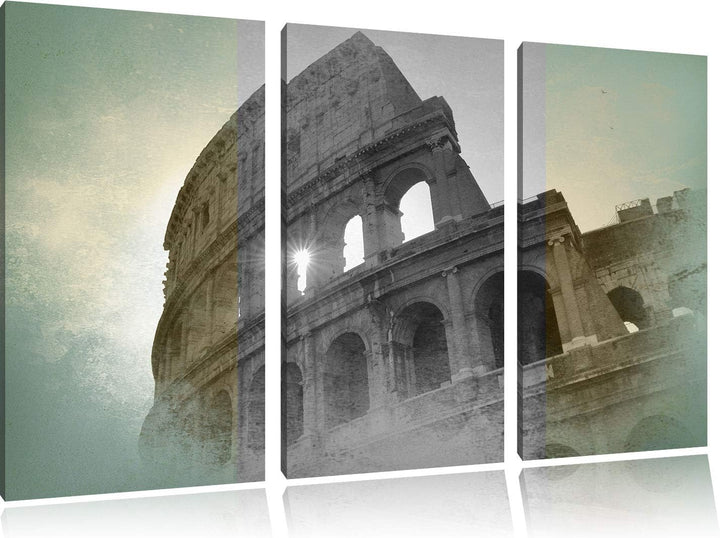 antikes Kolosseum in Rom schwarz/weiss 3-Teiler Leinwandbild 120x80 Bild auf Leinwand, XXL riesige B
