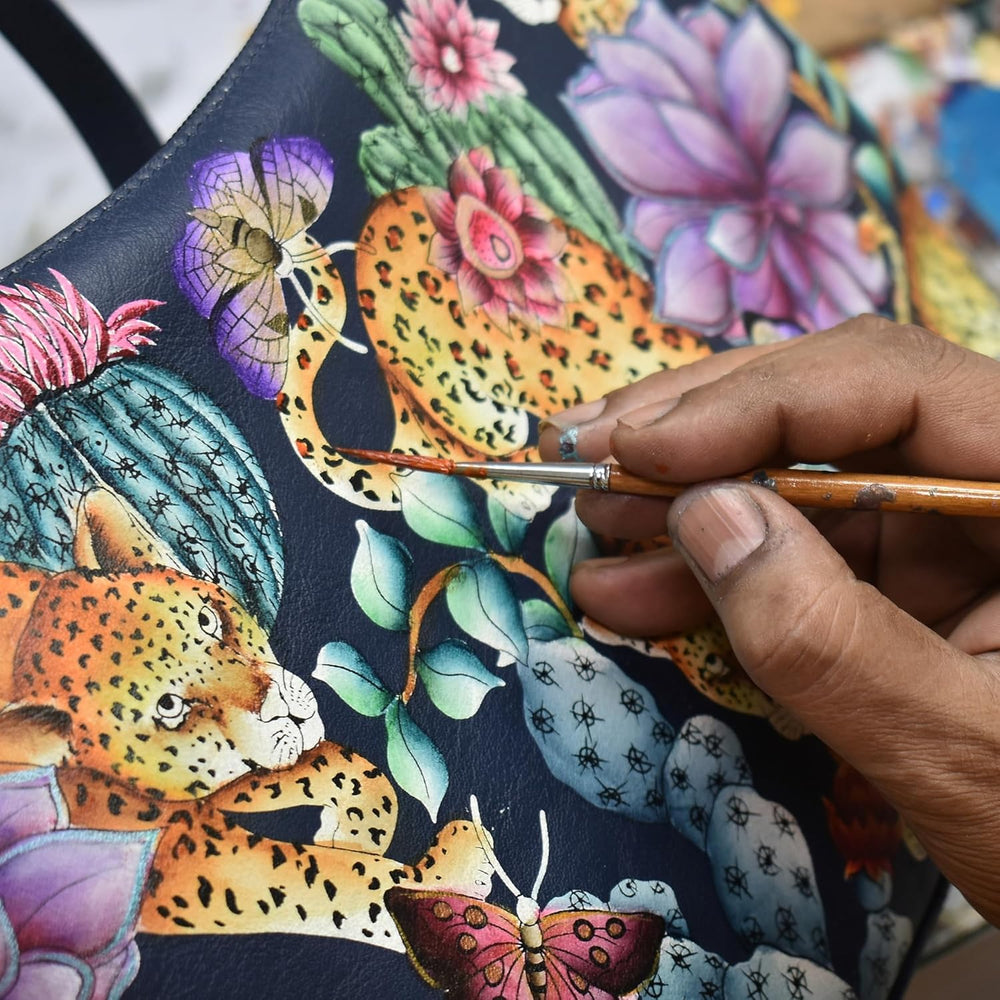 - HANDGEARBEITET AUS LEDER - Unsere Produkte werden in Indien aus 100% echtem, vollnarbigem Rindleder hergestellt, das sich weich und luxuriös anfühlt. Die einzelnen Teile werden von Hand zugeschnitten und bemalt, für eine Qualität, die ein Leben lang