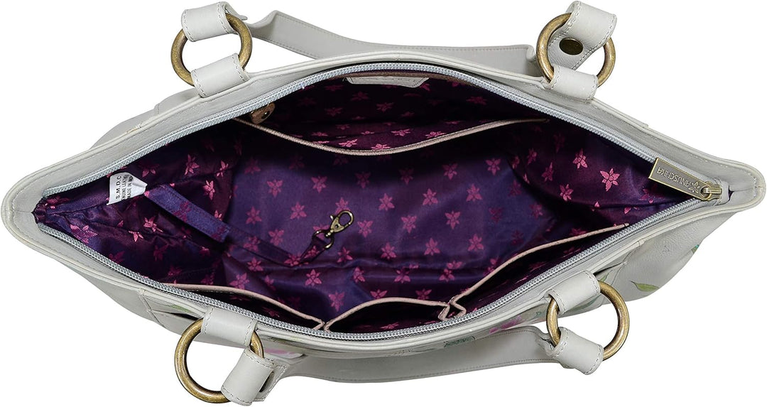 PRODUKTBESCHREIBUNGEN Als Swapan Basu Anfang der 80er Jahre durch Zufall auf die Idee kam, handbemalte Accessoires herzustellen, suchte er schnell Hilfe bei seiner besten Freundin und Ehefrau Roma. Im Jahr 1984 begann Roma mit dem Entwurf von handbemalten Taschen aus weichem Leder und entwickelte im Laufe der Jahre das Verfahren und die Maltechnik weiter. Heute ist es ein streng gehütetes Familiengeheimnis. Farben sind ein sehr kraftvolles Element in diesen Designs. Die breite Palette an abstrakten, farbenfrohen, fantasievollen und naturgetreuen Motiven, die in gedeckten Farben unterschiedlichster Intensität dargestellt sind, verwandelt jede Handtasche in ein Objekt zeitloser Vintage-Kunst.