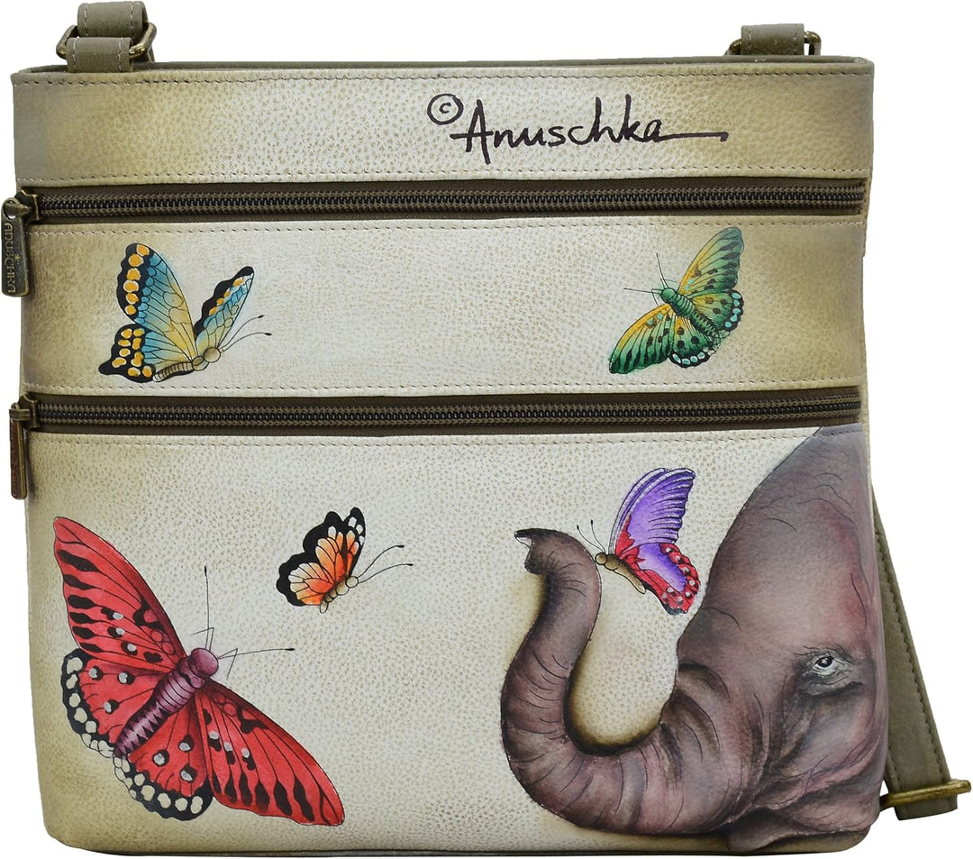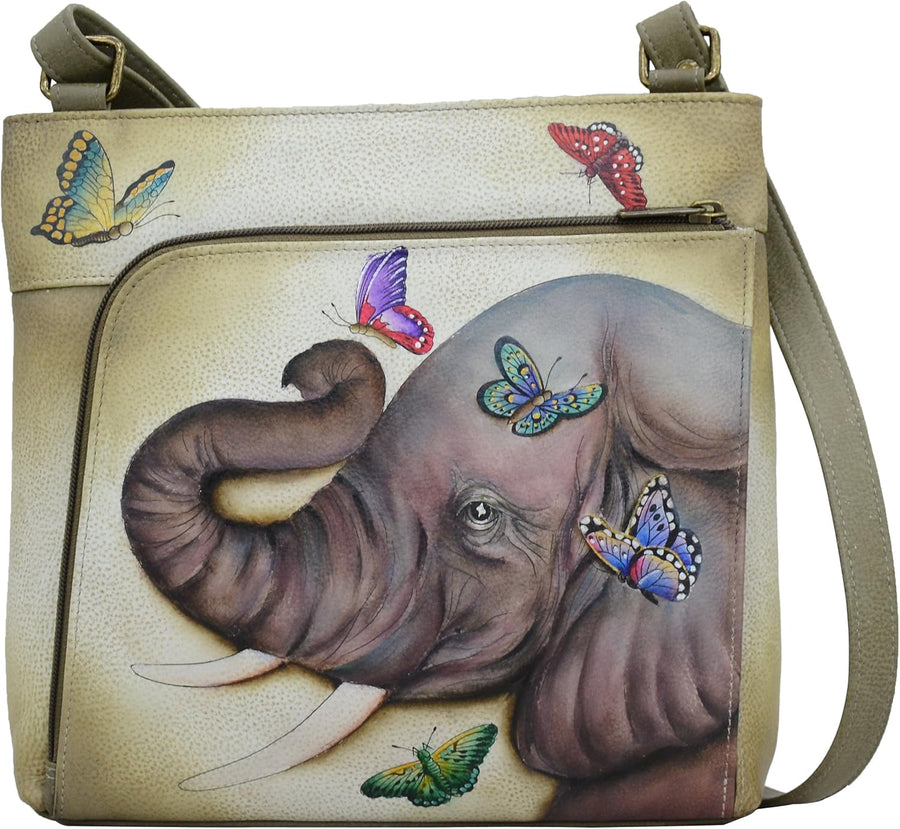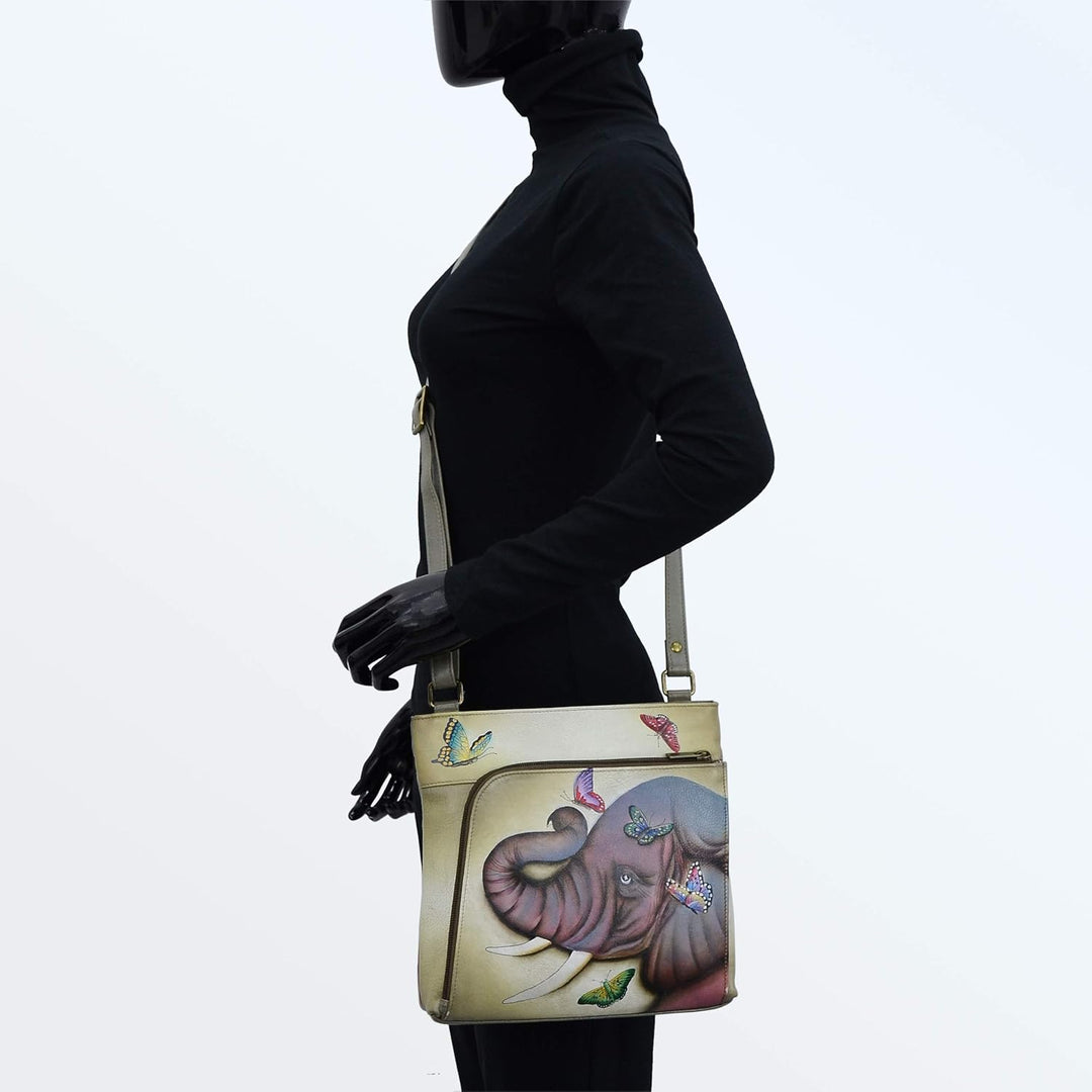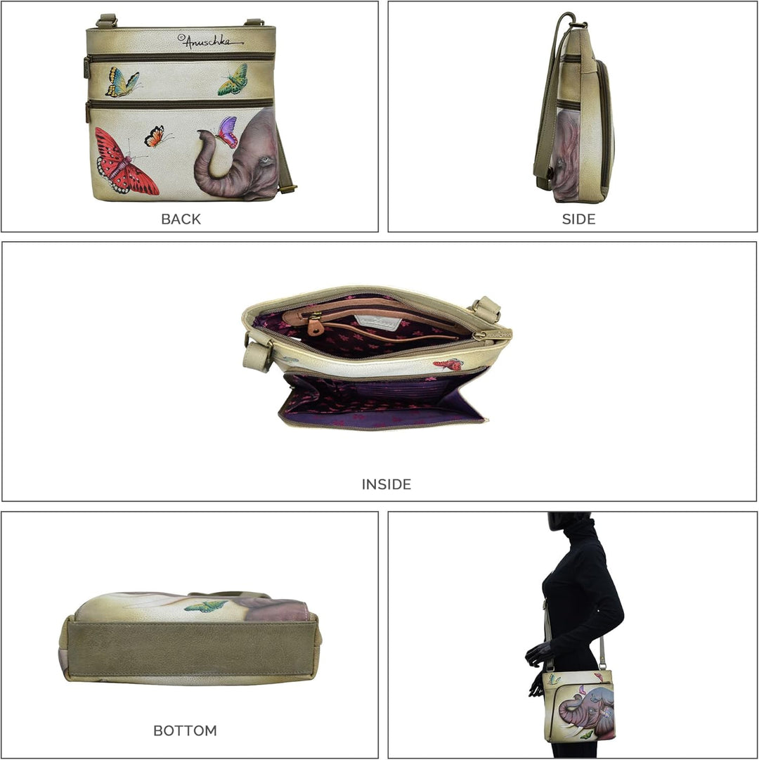 PRODUKTBESCHREIBUNGEN Als Swapan Basu Anfang der 80er Jahre durch Zufall auf die Idee kam, handbemalte Accessoires herzustellen, suchte er schnell Hilfe bei seiner besten Freundin und Ehefrau Roma. Im Jahr 1984 begann Roma mit dem Entwurf von handbemalten Taschen aus weichem Leder und entwickelte im Laufe der Jahre das Verfahren und die Maltechnik weiter. Heute ist es ein streng gehütetes Familiengeheimnis. Farben sind ein sehr kraftvolles Element in diesen Designs. Die breite Palette an abstrakten, farbenfrohen, fantasievollen und naturgetreuen Motiven, die in gedeckten Farben unterschiedlichster Intensität dargestellt sind, verwandelt jede Handtasche in ein Objekt zeitloser Vintage-Kunst.