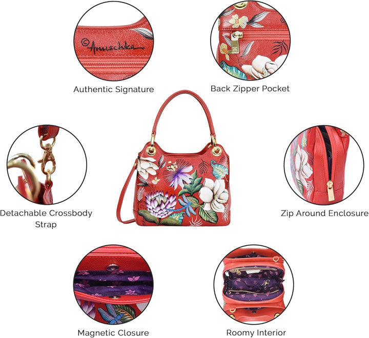 PRODUKTBESCHREIBUNGEN Farben, Natur, Neues, Reisen und Kulturen inspirieren die Anuschka Kollektionen. Wir geben luxuriöser Mode durch das Zusammenspiel Ihrer persönlichen Geschichte mit unserer künstlerischen Arbeit eine neue Bedeutung. Wir möchten, dass Sie wissen, dass unsere Produkte die Macht haben Leben zu verändern, unabhängig davon, ob Sie heute zum ersten Mal ein Anuschka Produkt erwerben oder Sie schon lange ein Fan unserer Marke sind. Durch den Kauf einer handbemalten Tasche investieren Sie in die Geschichten von mehr als 500 Familien und ermöglichen ihnen ein regelmässiges Einkommen, eine medizinische Versorgung, ein sicheres Zuhause sowie eine Ausbildung für ihre Kinder. Indem wir die Schönheit der Kunst mit Ihnen teilen, sind wir in der Lage, das Problem der Armut in eine Spirale des Wachstums zu verwandeln. Ihr Schritt nach vorne, die Anuschka Tasche lässig über der Schulter, ist eine Inspiration für uns und alle, deren Leben Sie berühren. Ihr Accessoire unterstützt Sie dabei und macht Sie zu einem Botschafter des Wandels, der altehrwürdige Handwerkstechniken wieder aufleben lässt, die sonst verloren gingen. Wir freuen uns darauf, diese märchenhafte Reise in unserem 35. Jahr fortzusetzen und Ihnen aufregende neue Kreationen, handgefertigten Schmuck und lebendige Loungewear zu präsentieren. Auf ein Leben voller Kunst, jeden Tag.