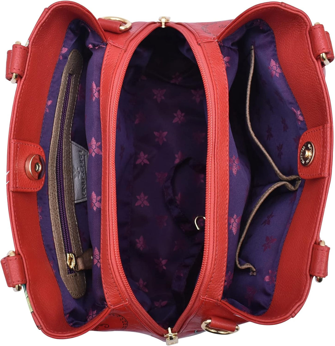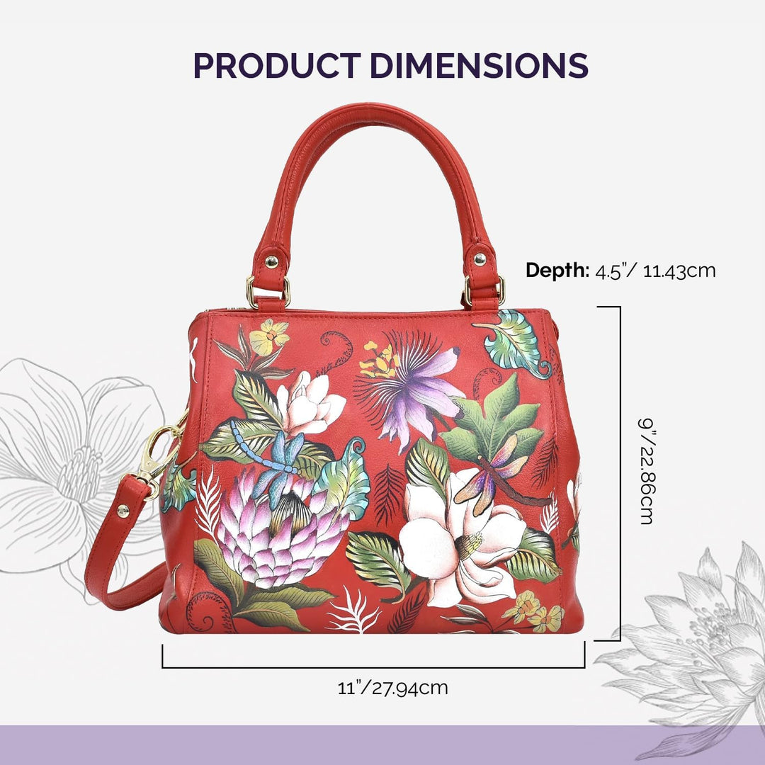 - CRIMSON GARDEN — Jede Tasche ist handbemalt, um ein Kunstwerk zu schaffen, das von der Natur und Vintage-Themen inspiriert ist. Lassen Sie sich von der Schönheit der Natur verzaubern. Eine atemberaubende Blumenpracht auf einem satten tiefroten
