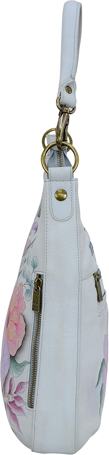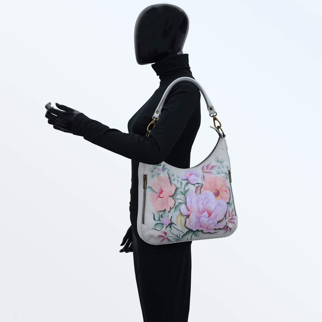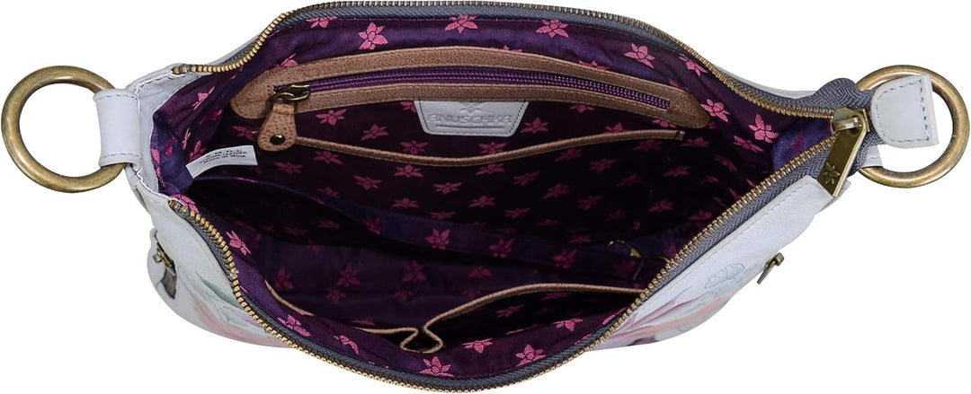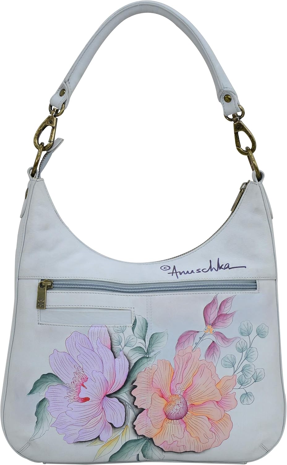 PRODUKTBESCHREIBUNGEN Als Swapan Basu Anfang der 80er Jahre durch Zufall auf die Idee kam, handbemalte Accessoires herzustellen, suchte er schnell Hilfe bei seiner besten Freundin und Ehefrau Roma. Im Jahr 1984 begann Roma mit dem Entwurf von handbemalten Taschen aus weichem Leder und entwickelte im Laufe der Jahre das Verfahren und die Maltechnik weiter. Heute ist es ein streng gehütetes Familiengeheimnis. Farben sind ein sehr kraftvolles Element in diesen Designs. Die breite Palette an abstrakten, farbenfrohen, fantasievollen und naturgetreuen Motiven, die in gedeckten Farben unterschiedlichster Intensität dargestellt sind, verwandelt jede Handtasche in ein Objekt zeitloser Vintage-Kunst.