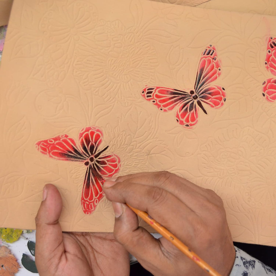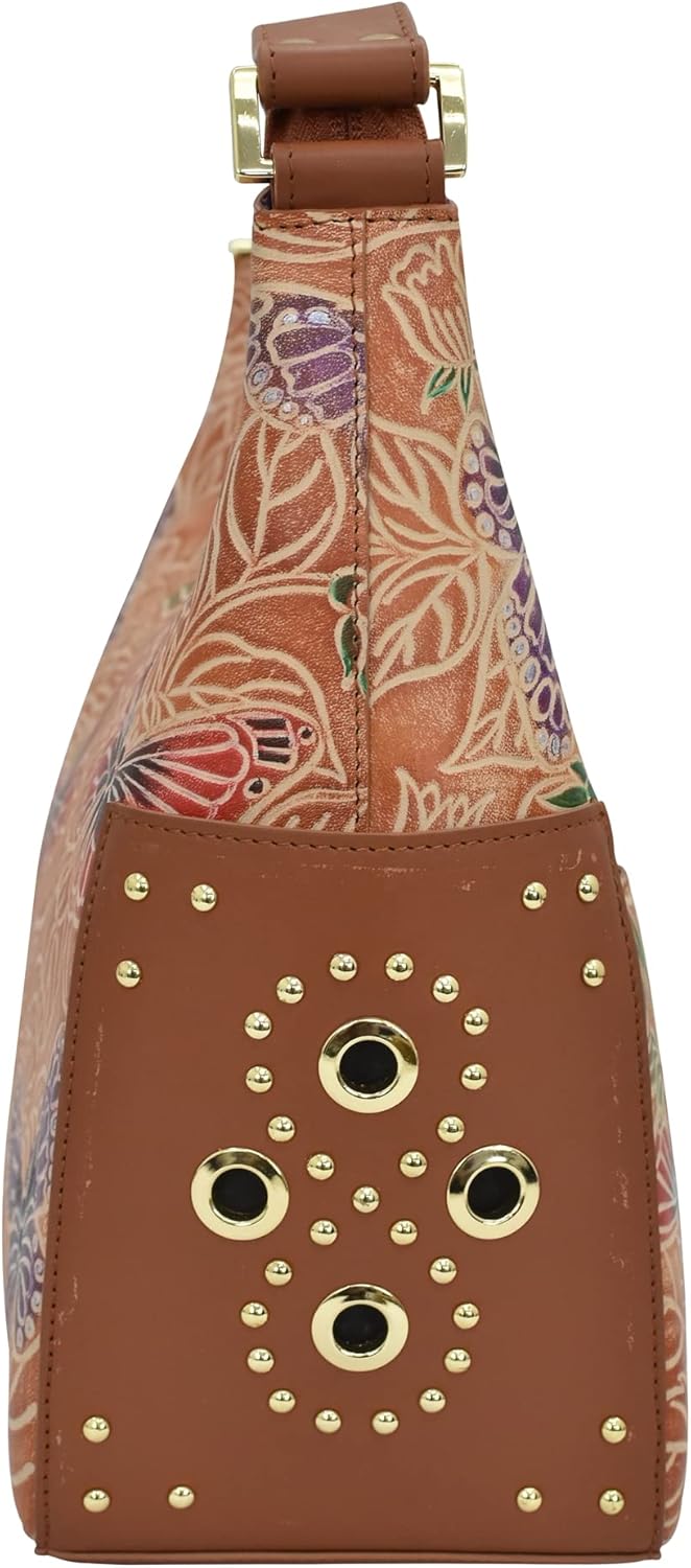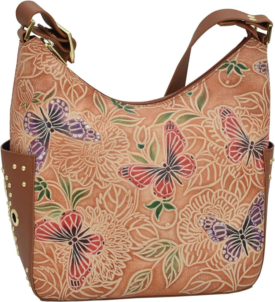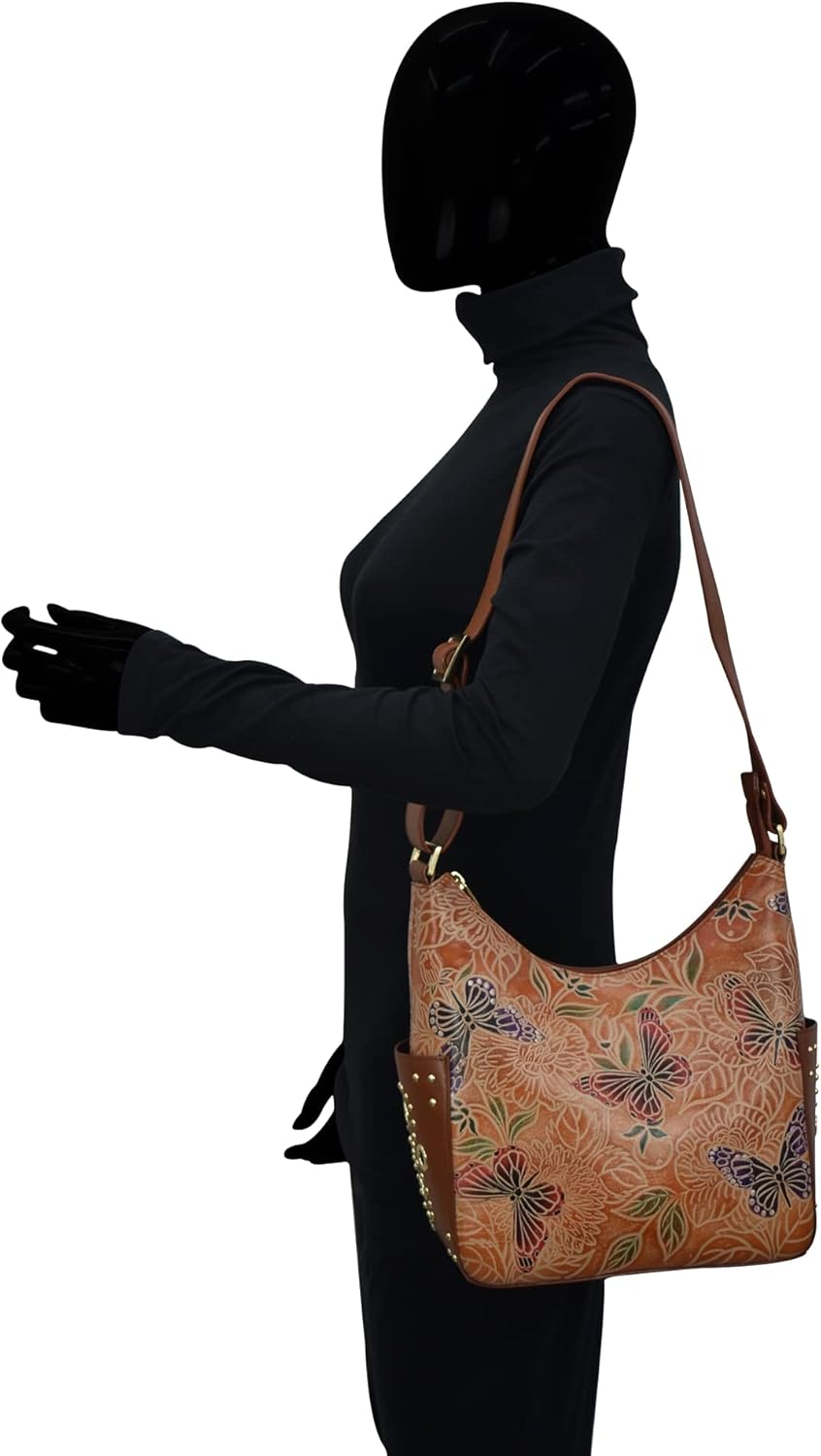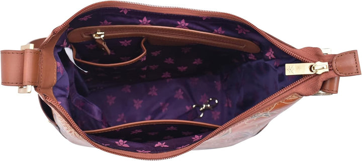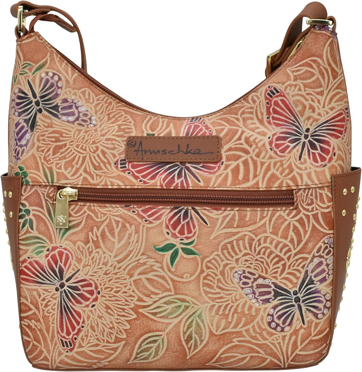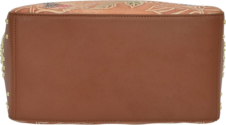 PRODUKTBESCHREIBUNGEN Als Swapan Basu Anfang der 80er Jahre durch Zufall auf die Idee kam, handbemalte Accessoires herzustellen, suchte er schnell Hilfe bei seiner besten Freundin und Ehefrau Roma. Im Jahr 1984 begann Roma mit dem Entwurf von handbemalten Taschen aus weichem Leder und entwickelte im Laufe der Jahre das Verfahren und die Maltechnik weiter. Heute ist es ein streng gehütetes Familiengeheimnis. Farben sind ein sehr kraftvolles Element in diesen Designs. Die breite Palette an abstrakten, farbenfrohen, fantasievollen und naturgetreuen Motiven, die in gedeckten Farben unterschiedlichster Intensität dargestellt sind, verwandelt jede Handtasche in ein Objekt zeitloser Vintage-Kunst. Anuschka verfügt über die weltweit grösste Kollektion handbemalter Taschen, die zu einzigartigen Geschenken werden und gleichzeitig Künstler und Handwerker unterstützen.