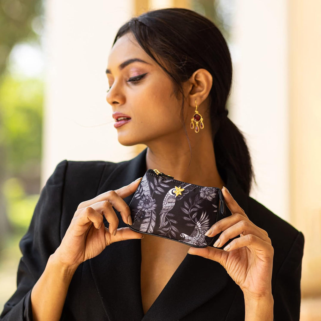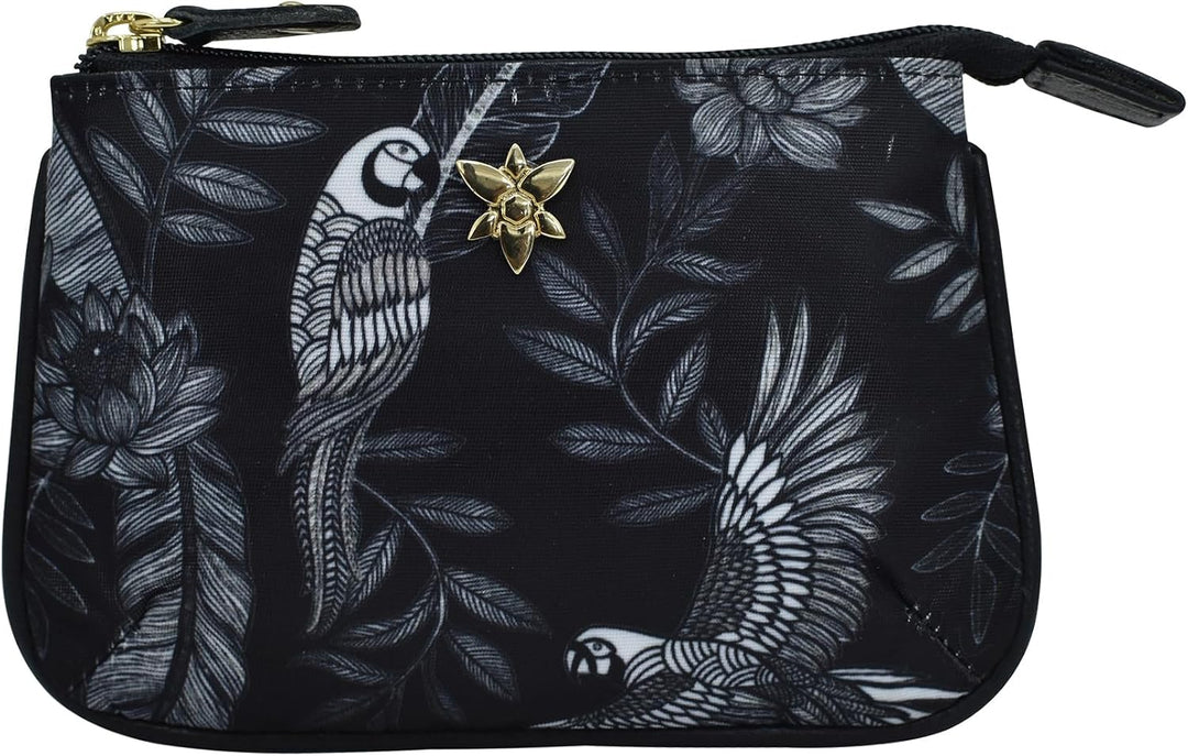 - JUNGLE MACAWS: Jede handbemalte Tasche ist ein einzigartiges Kunstwerk mit Naturmotiven. Vor dem schwarzen Hintergrund heben sich die schwarz-weissen Aras inmitten von Regenwaldpflanzen ab