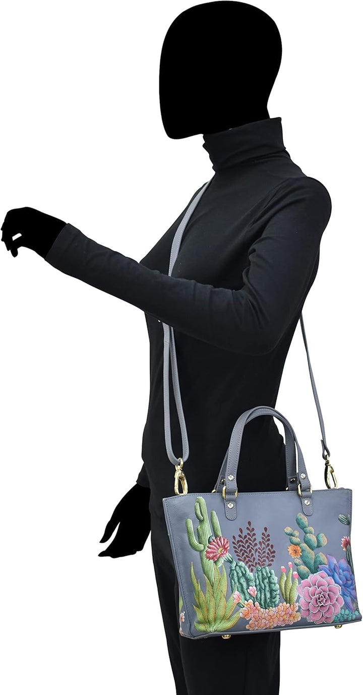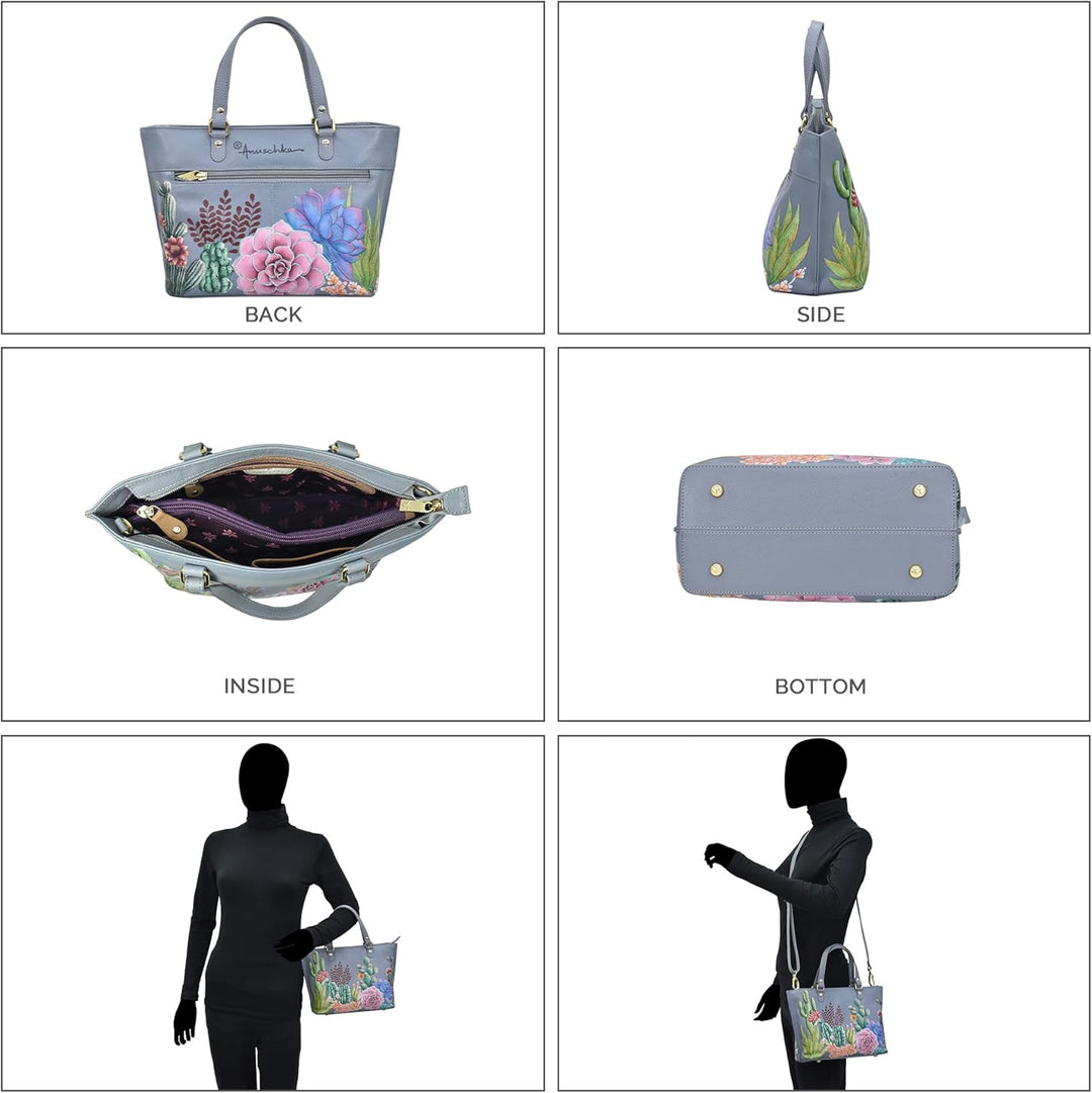 PRODUKTBESCHREIBUNGEN Als Swapan Basu in den frühen 80er Jahren auf die Idee kam, handbemalte Accessoires herzustellen, suchte er schnell Hilfe bei seiner besten Freundin und Ehefrau Roma. 1984 begann Roma handbemalte Taschen zu entwerfen und verfeinerte über die Jahre den Herstellungsprozess und die Art der Bemalung. Heute ist es ein streng gehütetes Familiengeheimnis. Die Farben sind ein sehr kraftvolles Element in ihren Designs. Die grosse Auswahl an abstrakten, imaginären und natürlichen Szenen, dargestellt in gedeckten Farben in verschiedenen Schattierungen und Nuancen, verwandelt jede Handtasche in ein Objekt der zeitlosen Kunst.