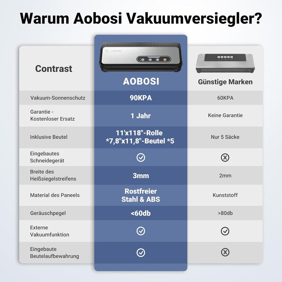 - ใ ๐๐๐ซ๐ ๐ ๐๐ฎ๐ข๐ฅ๐ญ-๐ข๐ง ๐๐ญ๐จ๐ซ๐๐ ๐ ๐๐ง๐ ๐๐๐ ๐๐ฎ๐ญ๐ญ๐๐ซ ๐๐จ๐ซ ๐๐๐ฌ๐ ๐จ๐ ๐๐ฌ๐ใ Der AOBOSI Vakuumversiegler kommt mit eingebautem