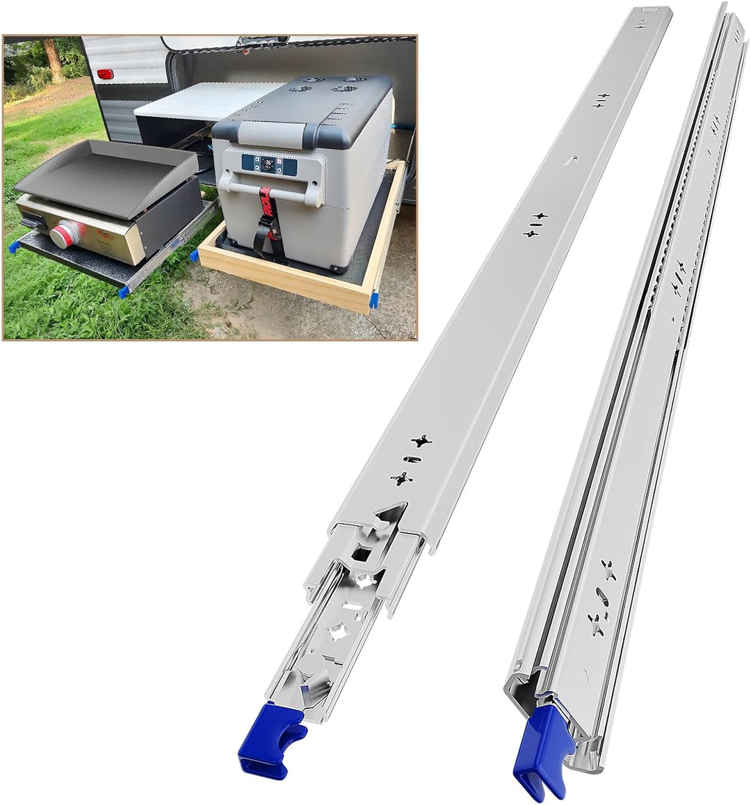 - 【Hochleistungs-Schubladenführungen verriegeln】Schwenken Sie die schwarzen Griffe zum Verriegeln und Entriegeln. Sie können sowohl geschlossen als auch vollständig geöffnet verriegelt werden. Verhindern Sie ein Verrutschen. 3-fach kugelgelagerte Schubladenführungen mit Vollauszug, sodass die Schublade vollständig herausgezogen werden kann, was praktisch zum Aufbewahren von Gegenständen ist.