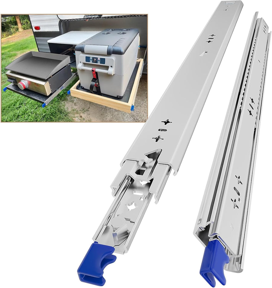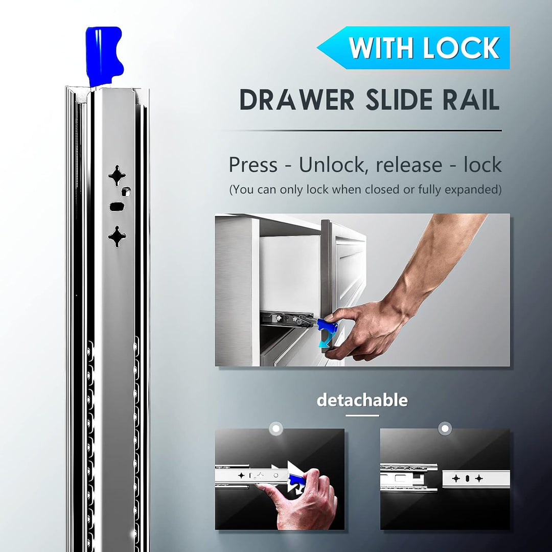 - 【Hochleistungs-Schubladenführungen verriegeln】Schwenken Sie die schwarzen Griffe zum Verriegeln und Entriegeln. Sie können sowohl geschlossen als auch vollständig geöffnet verriegelt werden. Verhindern Sie ein Verrutschen. 3-fach kugelgelagerte