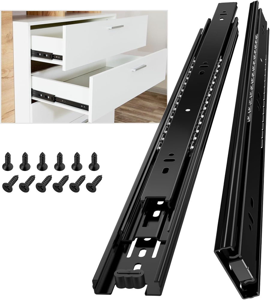 - 【AOLISHENG Schubladenschienen Vollauszug】:Menge: 1 Paar (2er-Pack) Befestigungsschrauben enthalten. Länge: 450 mm (18 Zoll). Hergestellt aus 1,2 mm dickem, verdicktem Stahl mit hoher Dichte, Tragfähigkeit 45 kg.