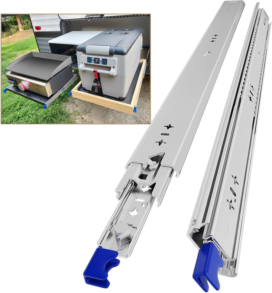- 【Hochleistungs-Schubladenführungen verriegeln】Schwenken Sie die schwarzen Griffe zum Verriegeln und Entriegeln. Sie können sowohl geschlossen als auch vollständig geöffnet verriegelt werden. Verhindern Sie ein Verrutschen. 3-fach kugelgelagerte