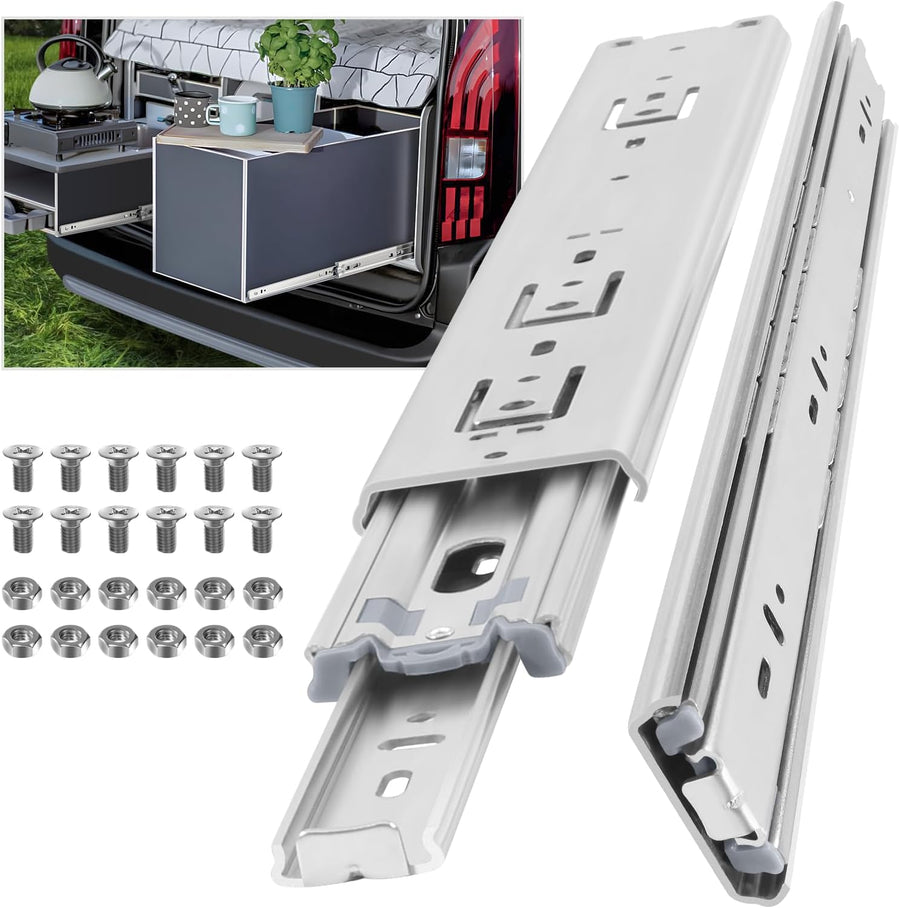 - 【Schwere Schubladenführung】:Grösse: 14" (350mm)- -Installationsdicke: 0,5"/12,7mm (jeweils)- -Breite: 2"(50mm)- -Tragfähigkeit: 70 kg - -Vollständig ausgefahrene Länge: 28 "---Lieferumfang: Schubladenführung 2er Set (1 Paar Schienen)
