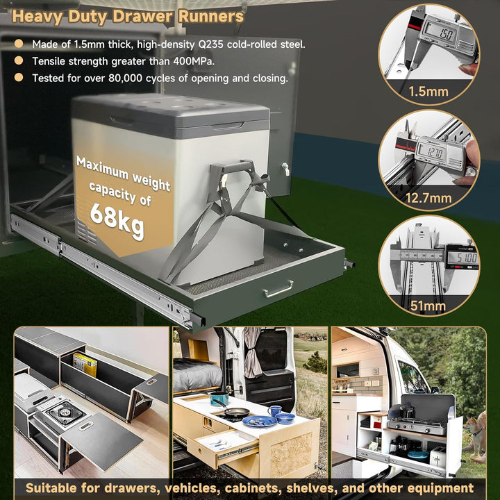 • 【Hochleistungs-Schubladenführungen verriegeln】Schwenken Sie die schwarzen Griffe zum Verriegeln und Entriegeln. Sie können sowohl geschlossen als auch vollständig geöffnet verriegelt werden. Verhindern Sie ein Verrutschen. 3-fach kugelgelagerte