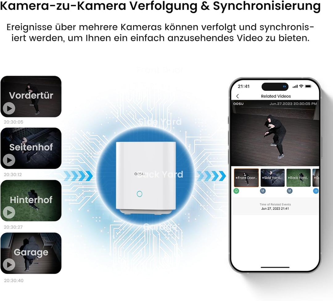 - Decken Sie jede Ecke ab – 100 % kabellos macht die Installation schnell und einfach und bietet höhere Installationsflexibilität. Das kabellose Sicherheitskamerasystem von aosu mit 166° Superweitwinkel schützt Ihr Zuhause ohne toten Winkel. Das