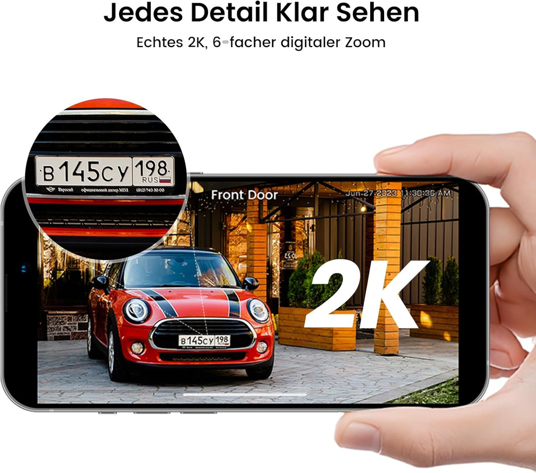 - 2K Auflösung, Klarheit bei Tag und Nacht: Erfassen Sie jedes Ereignis rund um Ihr Zuhause in 3MP-Auflösung. Nicht nur tagsüber, sondern auch nachts verbessern 4 LED-Leuchten die Lichtquelle um 100 % im Vergleich zu 2 LED-Leuchten, was eine