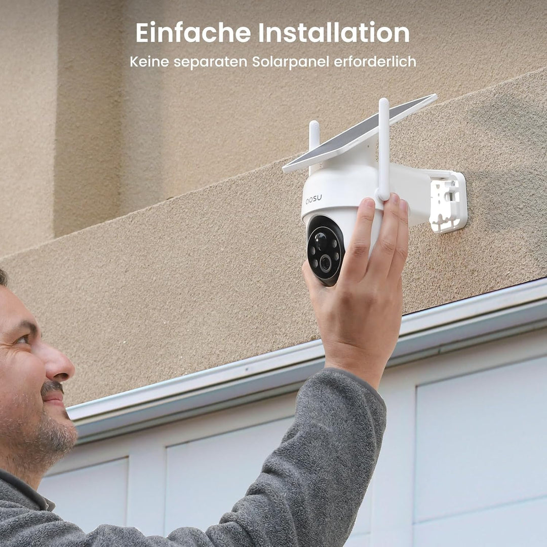 - Solarenergie Aussenkamera, Einmalige Installation und Ewiger Betrieb: Ein eingebautes Solarpanel hält die Batterie aufgeladen, und 3 Stunden Sonnenlicht täglich sorgen für den Betrieb, auch an regnerischen und bewölkten Tagen. Installieren Sie es an