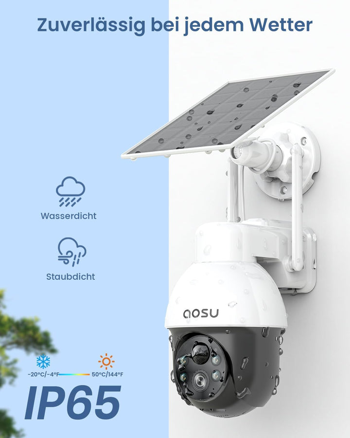 - 【Abnehmbares Solarpanel für flexible Installation】 – Dank des abnehmbaren Solarpanels können Sie die AOSU C9L Überwachungskamera einfach und flexibel installieren. Passen Sie das Panel an verschiedene Positionen an, um stets optimale