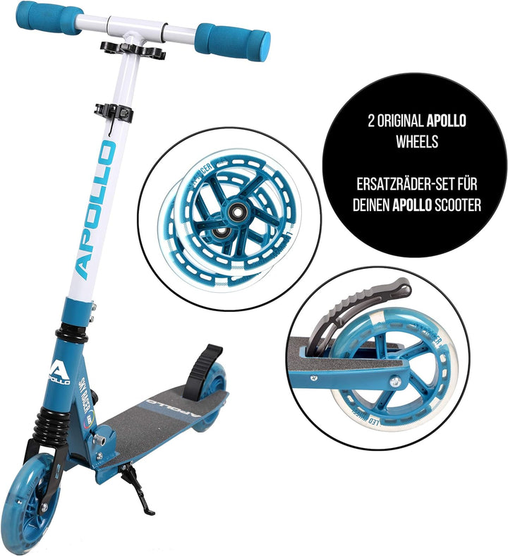 - MARKENPRODUKT: Apollo Profi Scooter LED-Rollen begeistern durch optimale Fahreigenschaften, hochwertige High-Rebound-Rollen und ABEC 7 Kugellager