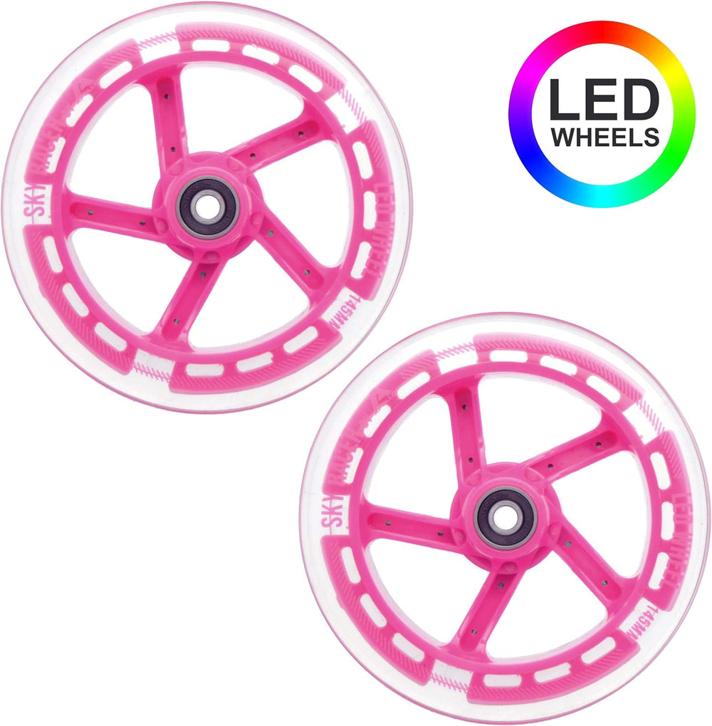 - SET: Das Paket beinhaltet 2 Profi Ersatz LED-Wheels inklusive Schrauben, 145mm Pro Roller-Räder mit Nylon Core und ABEC 7 Kugellager