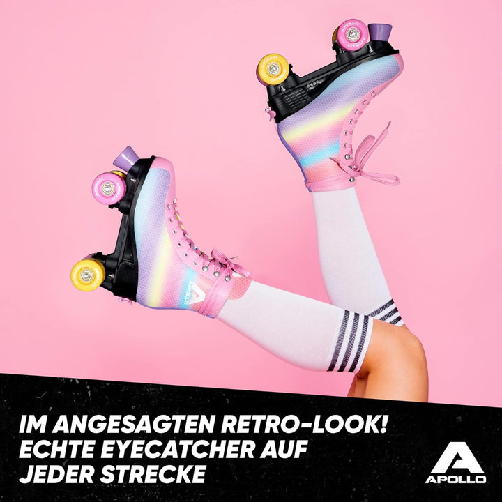- SCHICKES DESIGN: Skate für Kinder und Erwachsene im kultigen Retro-Look, farbenfroh oder dezent für jeden Geschmack. Insbesondere fallen diese Rollerskates Damen oft und gerne ins Auge.