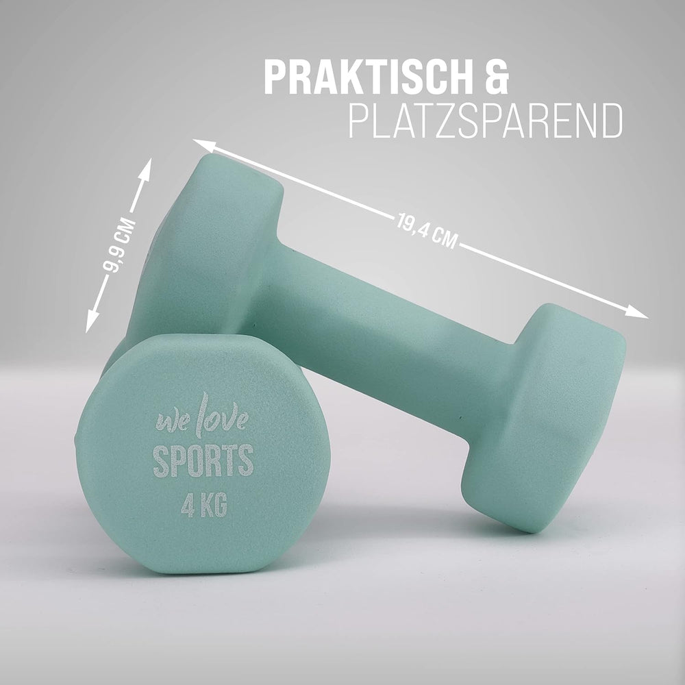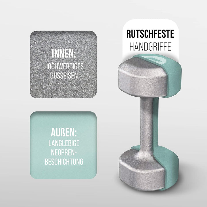 - RUTSCHFESTES MATERIAL: Die 4 kg Hanteln bestehen aus hochwertigem Gusseisen und sind mit einem rutschfesten Neoprenmaterial beschichtet. Dies sorgt für optimalen Grip für ein sicheres Training mit dem Hantelset
