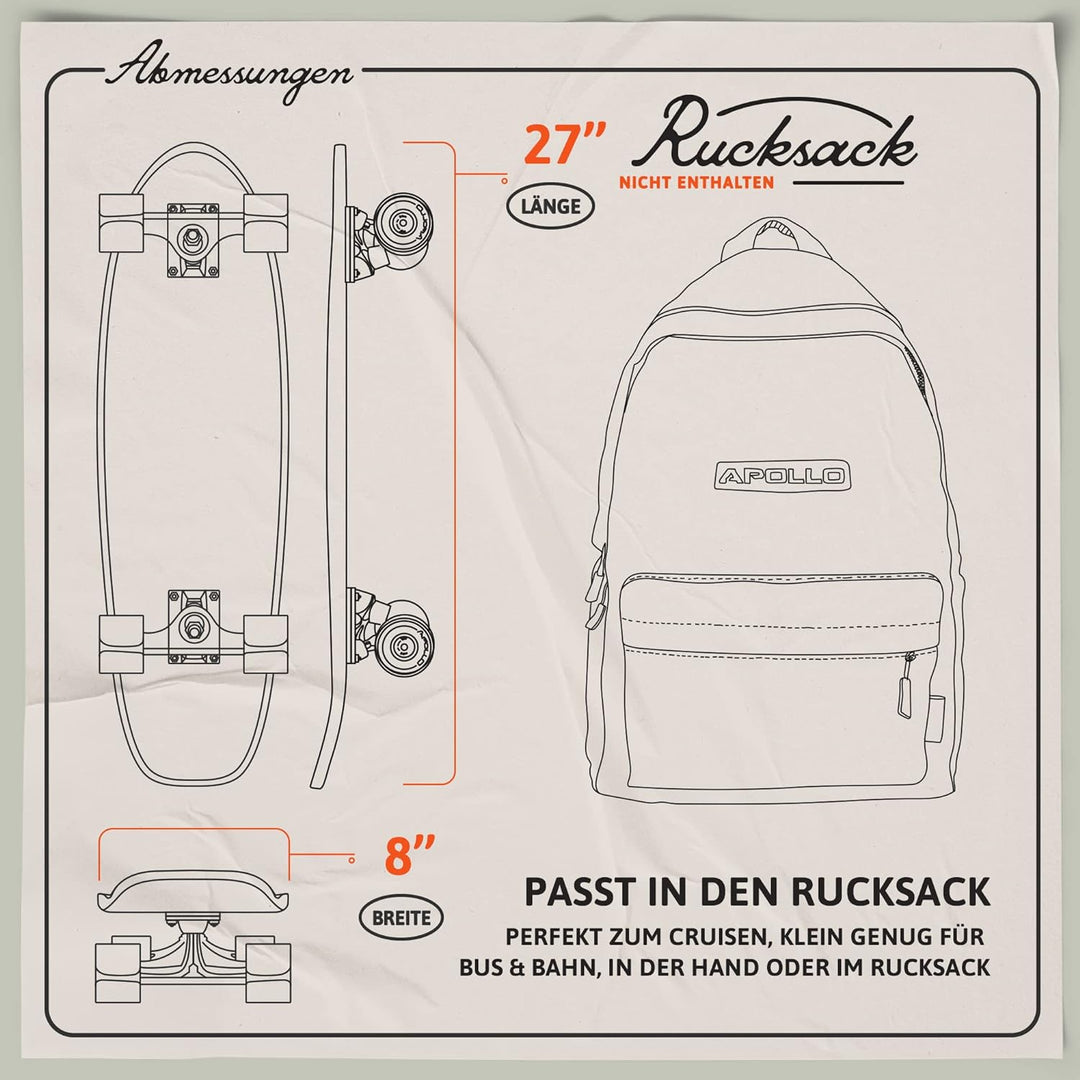 - FUN TREND ✓ Der kleine Apollo midi Cruiser mit Holz-Deck kommt mit einer handlichen Grösse von 68,5 x 20cm daher. Klein aber OHO! Grosse Power auf kleiner Fläche.