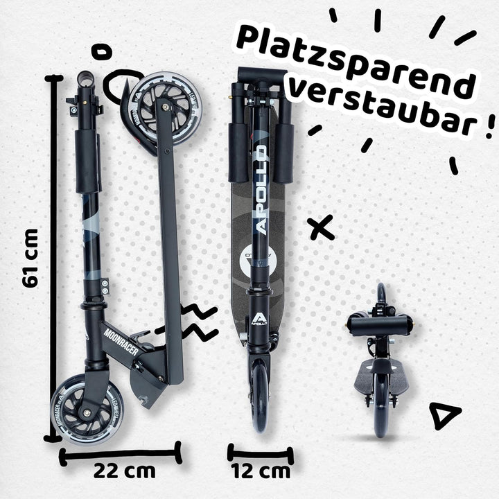 - LEUCHTENDER FAHRSPASS: Der Apollo City Roller für Kinder ist klappbar und höhenverstellbar, ausgestattet mit Stossdämpfern und Abec 7 Kugellagern. Leuchtende 145mm LED Rollen machen unseren Kinder Roller zum absoluten Hingucker!