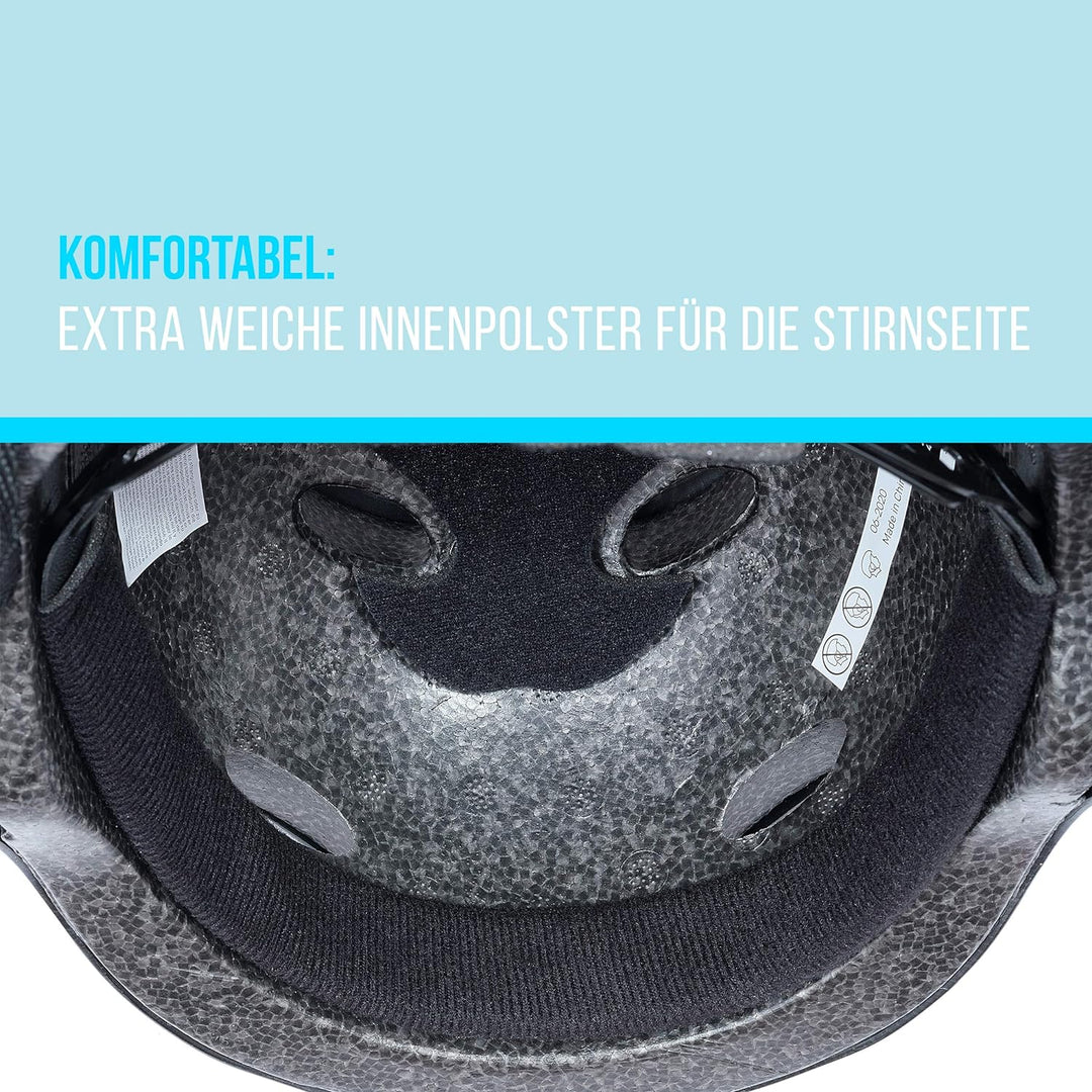 • SICHERHEIT: Die robuste Aussenschale beim Skaterhelm Kinder ist extrem schlagfest und innen durch weiche Polsterung stossabsorbierend. Deutlich robuster durch In-Mold Technik!
