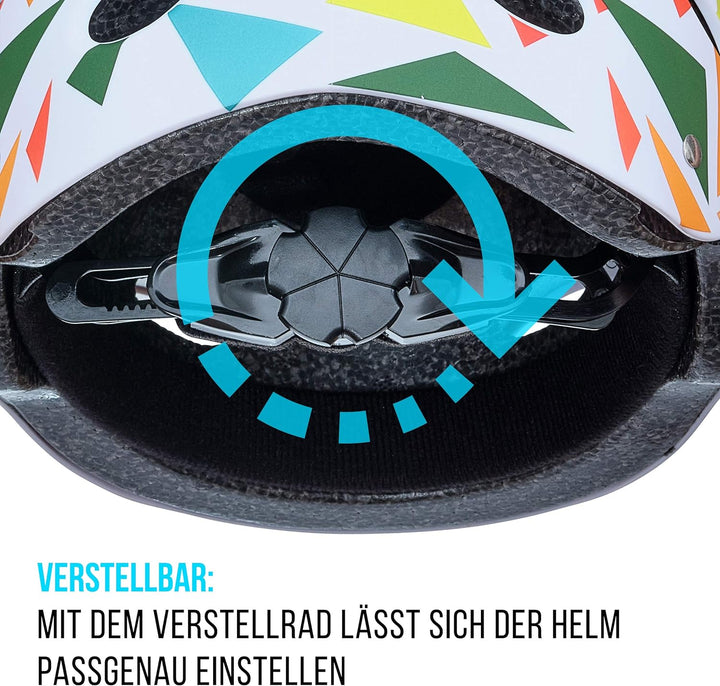 • TRAGEKOMPFORT: Eine weiche Polsterung (Schaumstoffpads) im Kinder Fahrradhelm sorgt für einen hohen Tragekomfort. 9 Belüftungslöcher erlauben eine optimale Belüftung