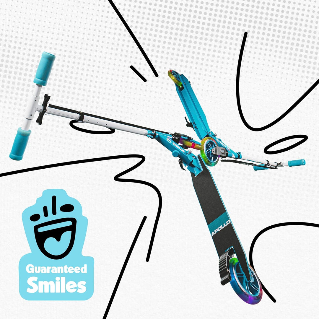 - LEUCHTENDER FAHRSPASS: Der Apollo Skyracer Scooter Kinder ist klappbar und höhenverstellbar, ausgestattet mit Stossdämpfern und Abec 7 Kugellagern. Leuchtende 145mm LED Rollen machen unseren Kinder Roller zum absoluten Hingucker! Sehr hochwertiger,