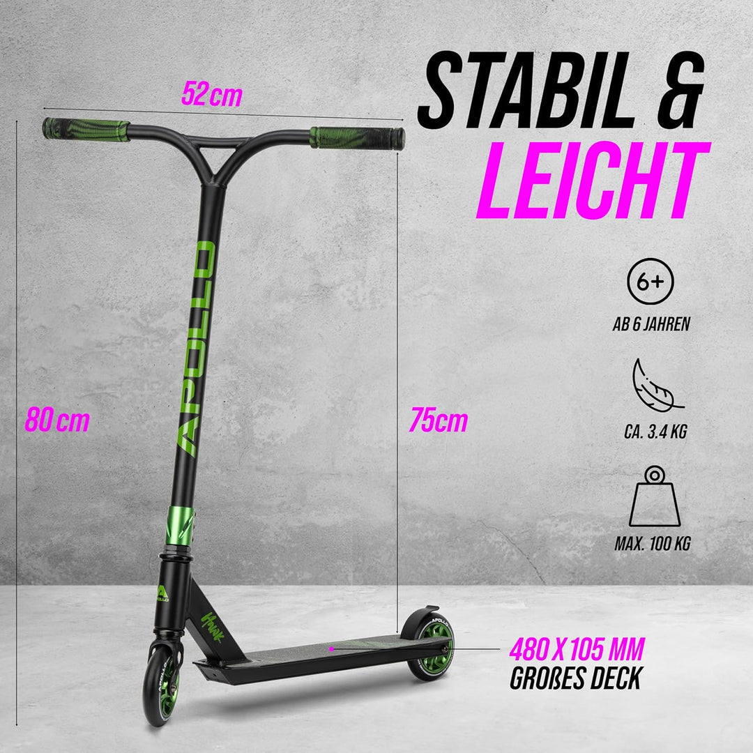 Apollo Stuntscooter Hawk - Freestyle Kickscooter für Kinder und Erwachsene, Kinderroller, Trick Roll