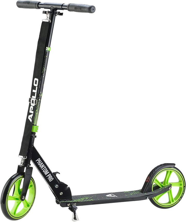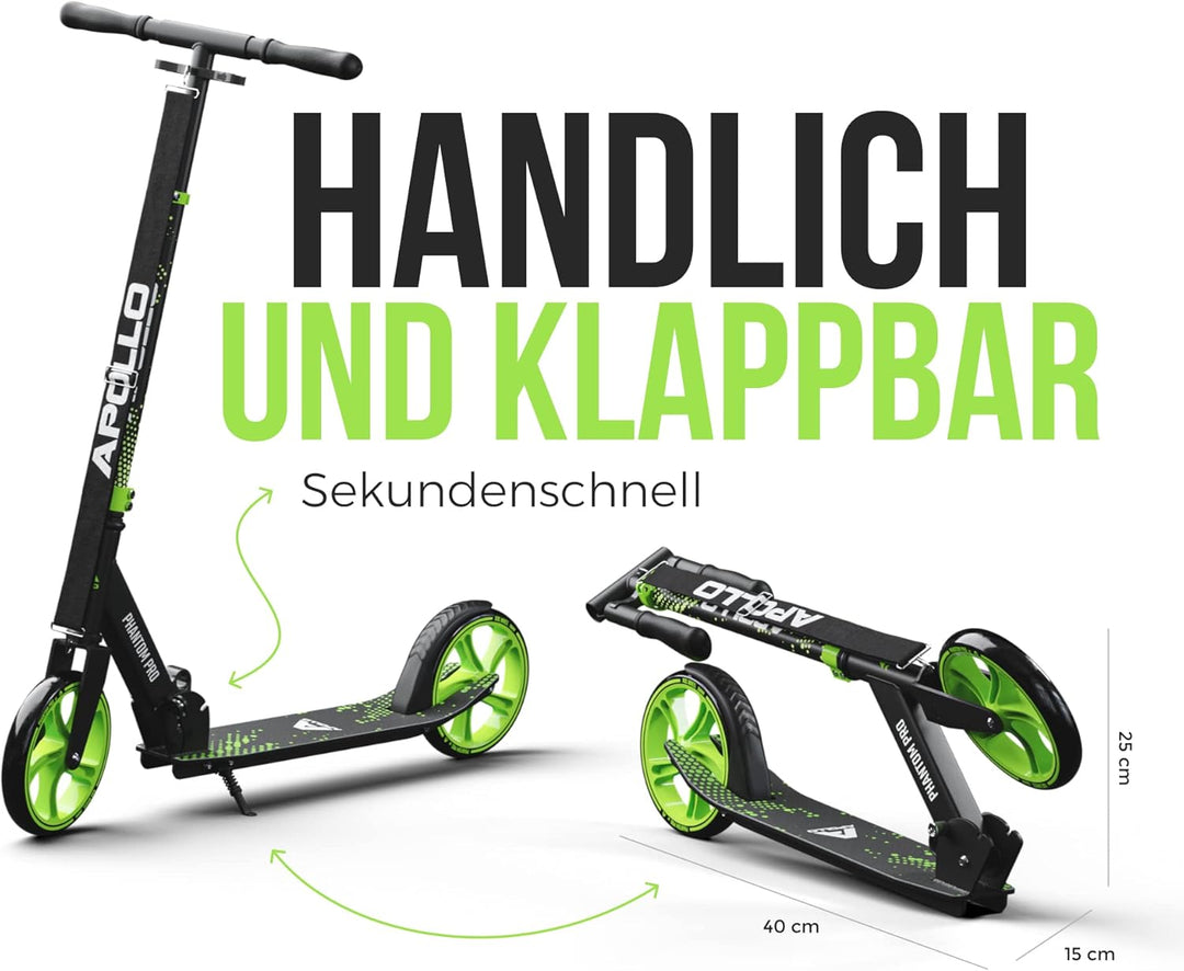 - FAHRSPAss XXL: Apollo Kinder Roller Phantom Pro - ein klappbarer und höhenverstellbarer Kickscooter mit bunten 200 mm XXL LED Wheels, die im Dunkeln leuchten. Ein City Roller für Erwachsene, perfekt für Pendler zum Mitnehmen in Zug, Bus & Bahn