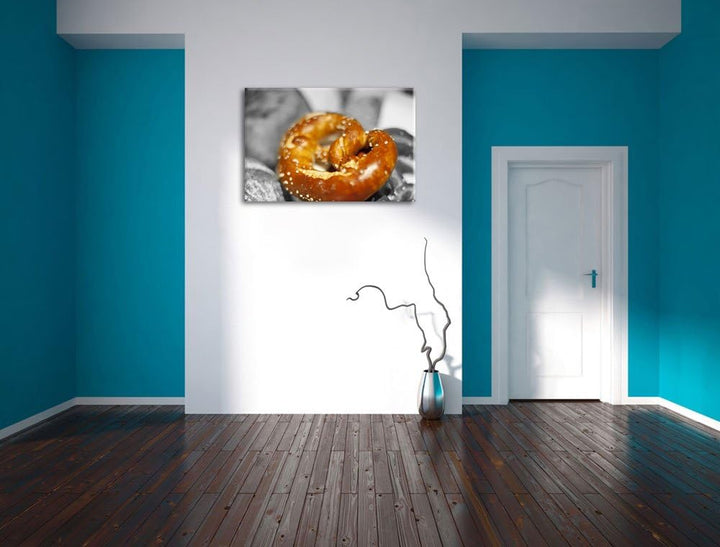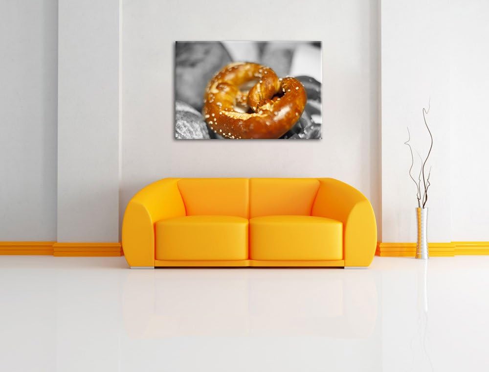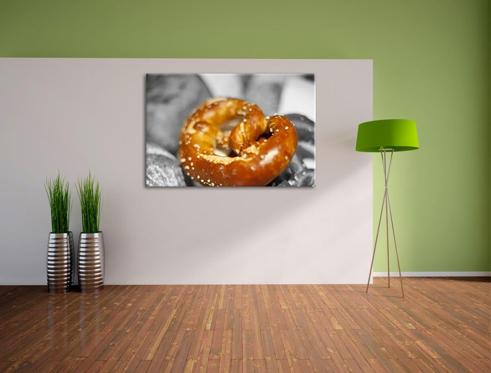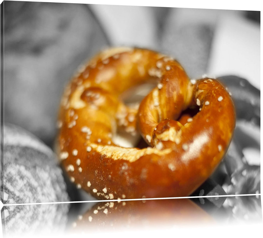 appetitliche gebackene Salzbrezel schwarz/weiss auf Leinwand, XXL riesige Bilder fertig gerahmt mit