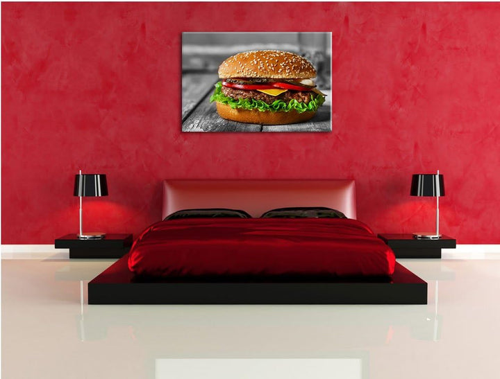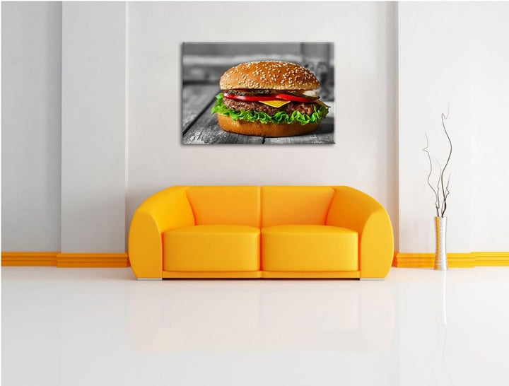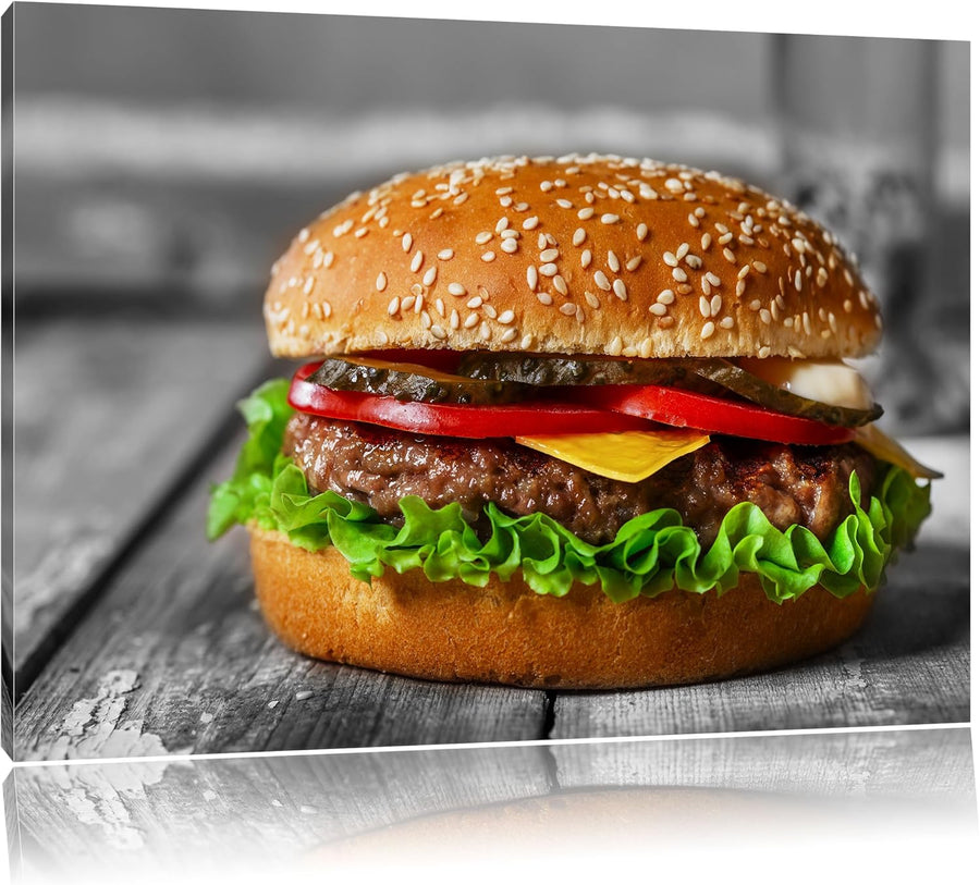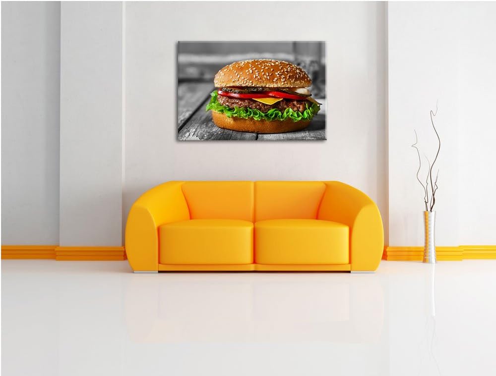 appetitlicher Cheeseburger schwarz/weiss Format: 100x70 auf Leinwand, XXL riesige Bilder fertig gera
