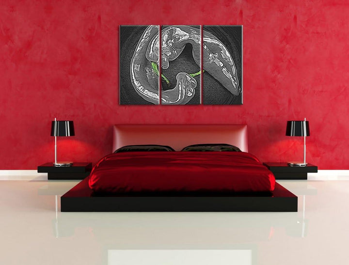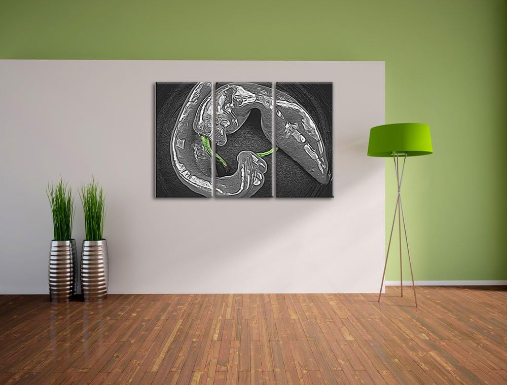 appetitliche scharfe Chilischoten schwarz/weiss Deluxe 3-Teiler Leinwandbild 120x80 Bild auf Leinwan