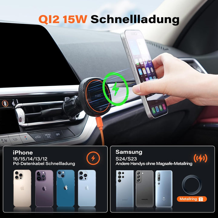 - ⚡【Leistungsstarke Magnetische Absorption】Die handyhalterung auto mit ladefunktion iphone verwenden sie 12 N45 ringmagnete mit 0,1S automatischer ausrichtung, absorption und aufladung. Das paket kommt mit einem ring eisen und positionierung karton,