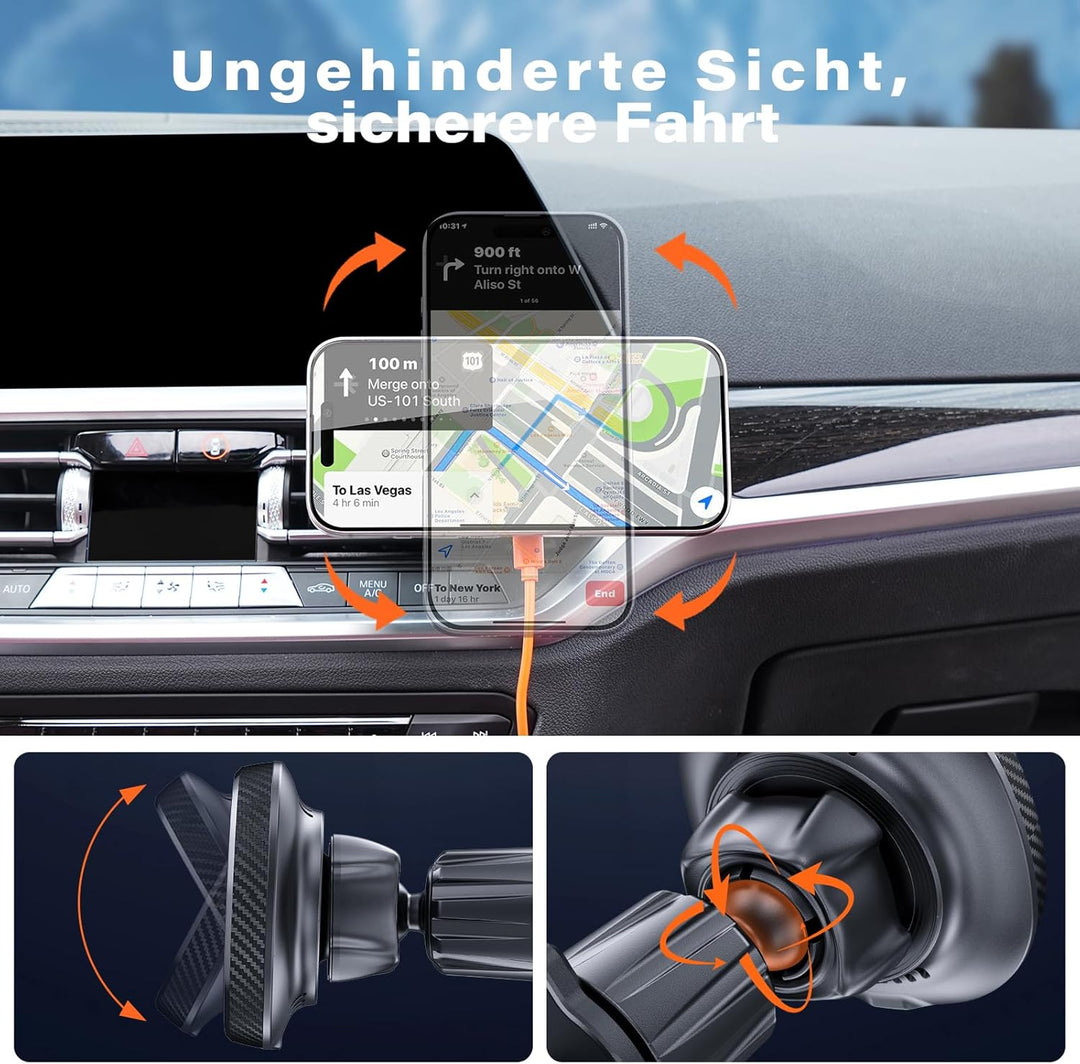 - ⚡【Kabelloses Schnellladen】Die magsafe autohalterung mit ladefunktion mit 15 W für schnelles Aufladen in ca. 2 Stunden. Kabelloses Aufladen verwendet einen einzigartigen Kühlchip und eine spezielle Magnetplatte für störungsfreies und effizientes