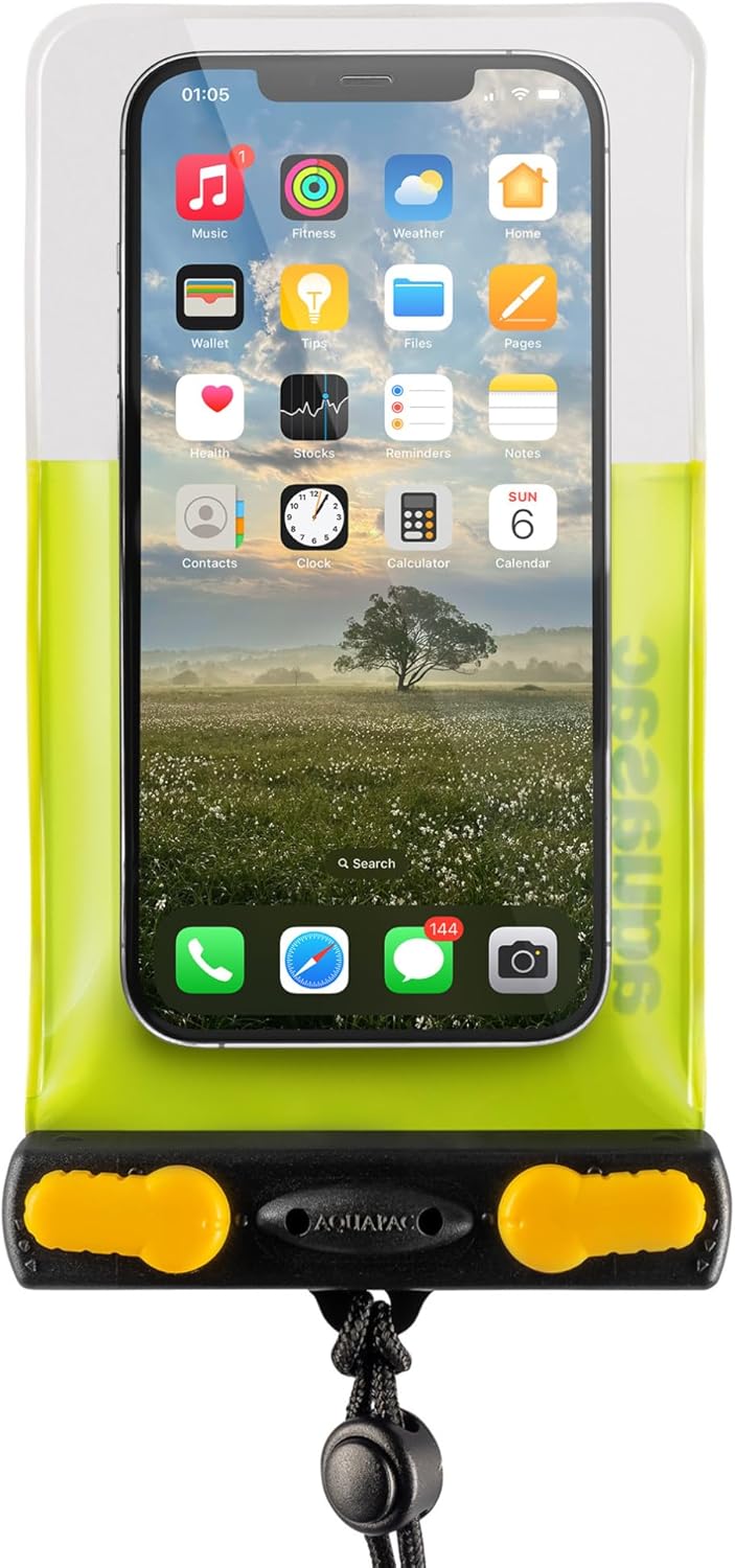 - Unsere patentierte, original ultra-sichere Aquaclip Dichtung hält Ihr Telefon sicher, mit einem verstellbaren Umhängeband für Komfort. Die Hülle passt für Handygrössen bis und einschliesslich iPhone 8/XS und Galaxy S8