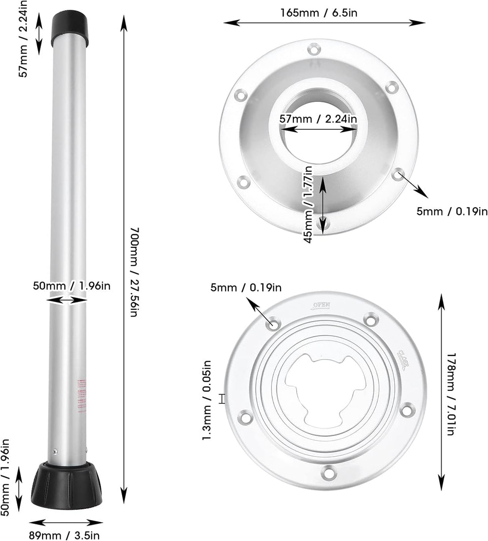 - Breiter Anwendungsbereich: Dieses praktische Tischbein eignet sich für Yacht-/Wohnmobil-/Bus-Tischstützen, Gegenstützen usw. mit einem Durchmesser von 1,96 Zoll, einer maximalen Höhe von 27,6 Zoll und einer Auflagefläche von 19,7 x 19,7 Zoll . Wenn