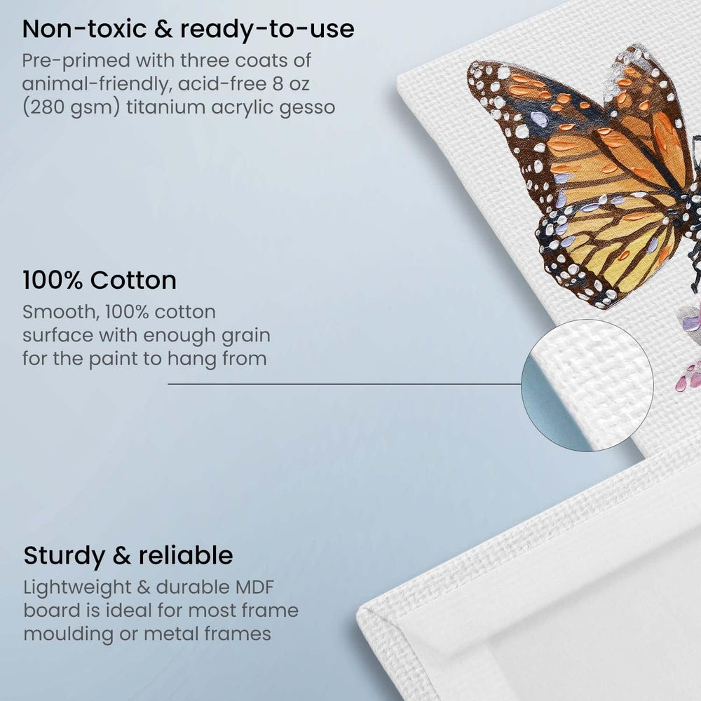 - Baumwolle macht die ideale Kunst-Oberfläche: Unsere Leinwandbretter sind aus Baumwolle, so dass Pinsel einfach direkt über sie gleiten und das Malen mühelos macht. Kartonkern aus säurefreiem Recyclingpapier